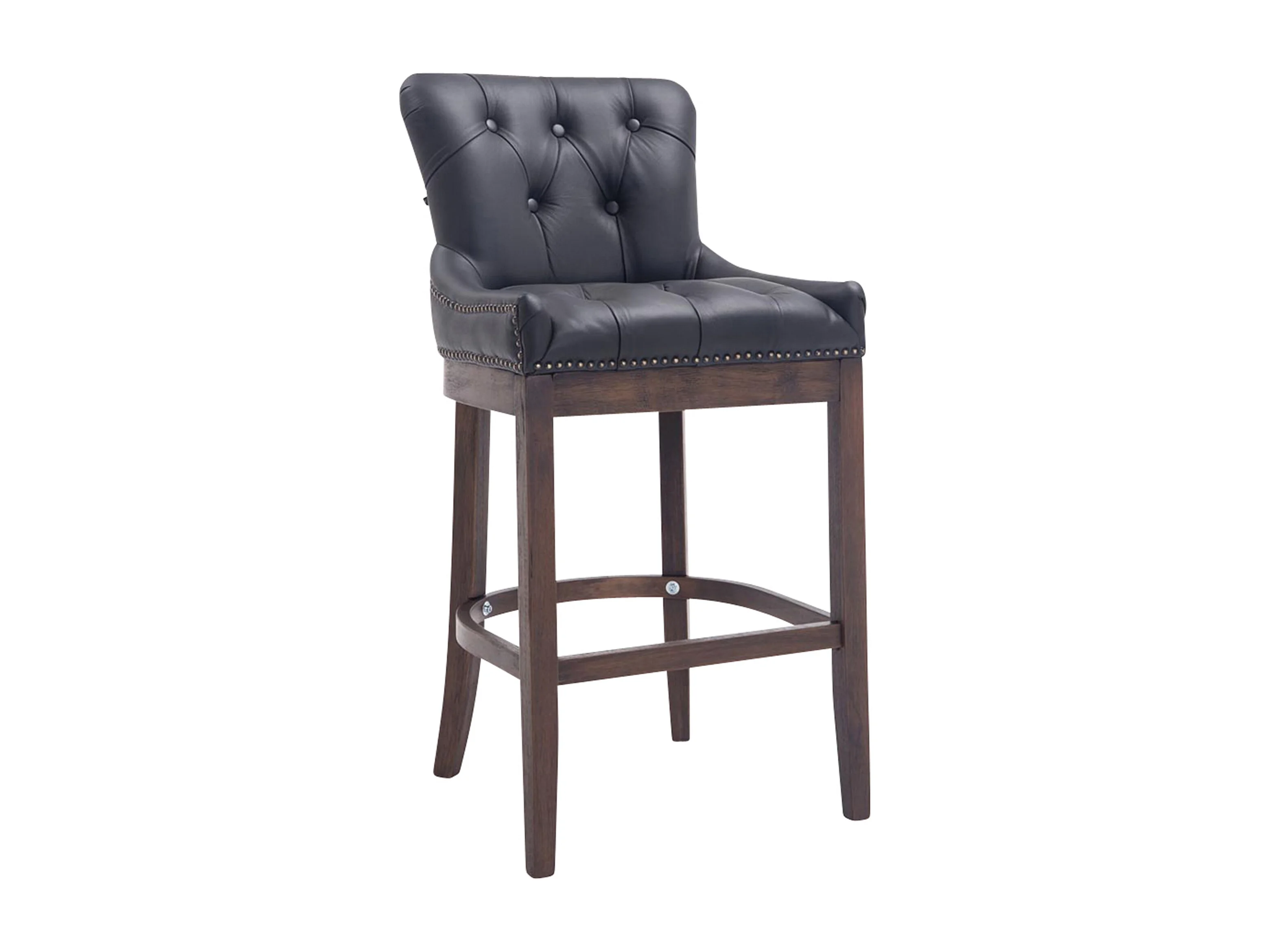Tabouret de bar - Véritable cuir & Bois - Noir - Lakewood