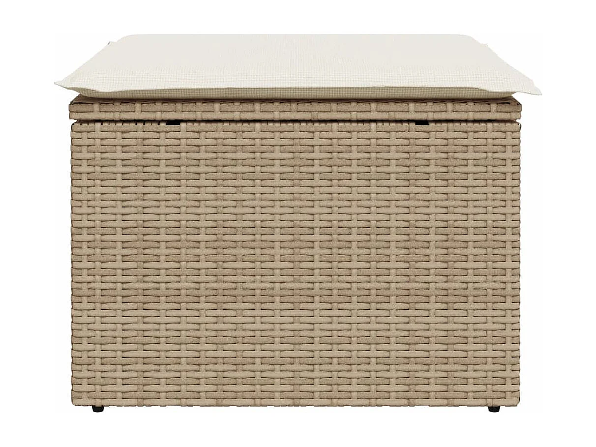 Tabouret de jardin avec coussin beige 55x55x37 résine tressée