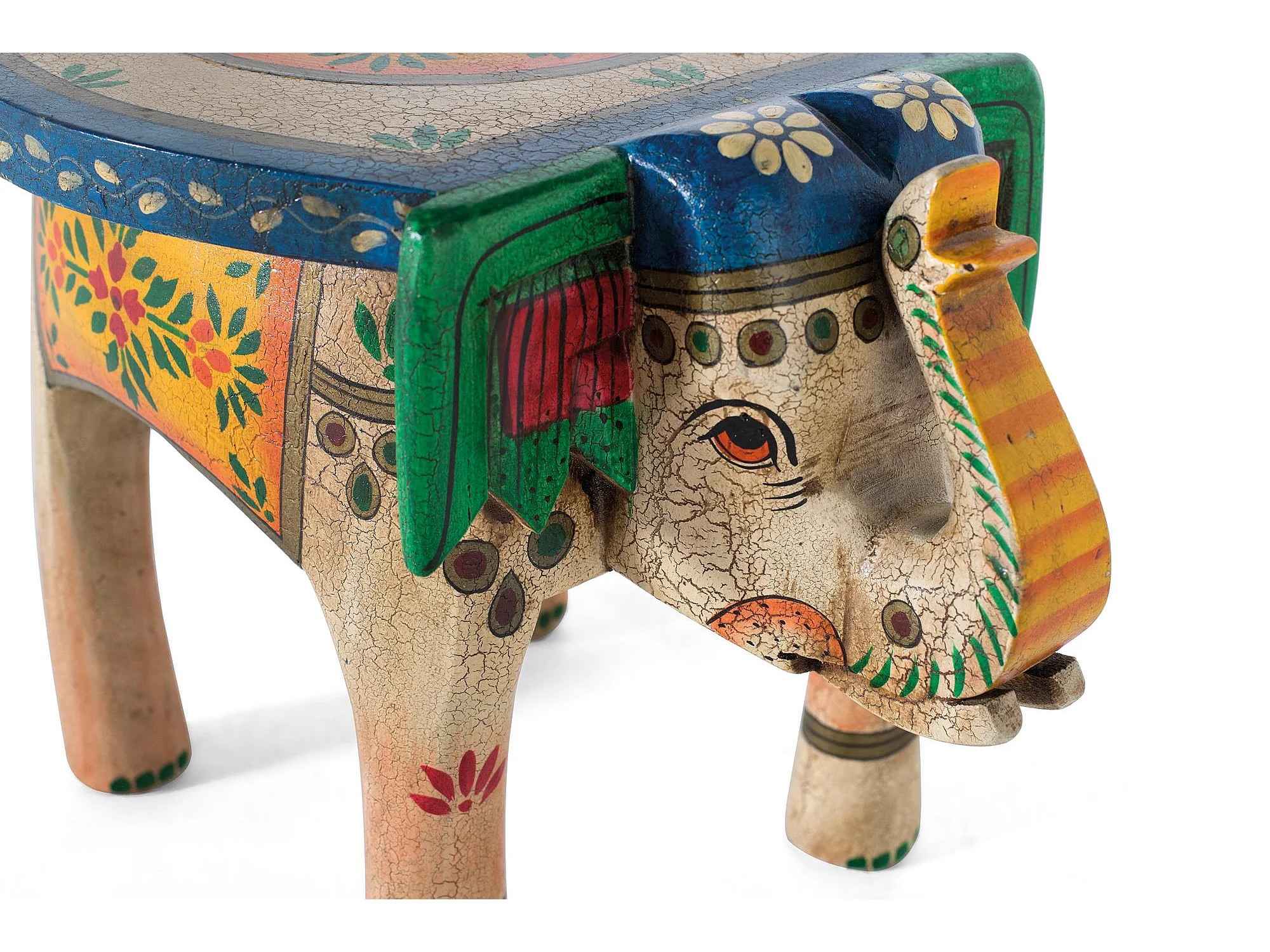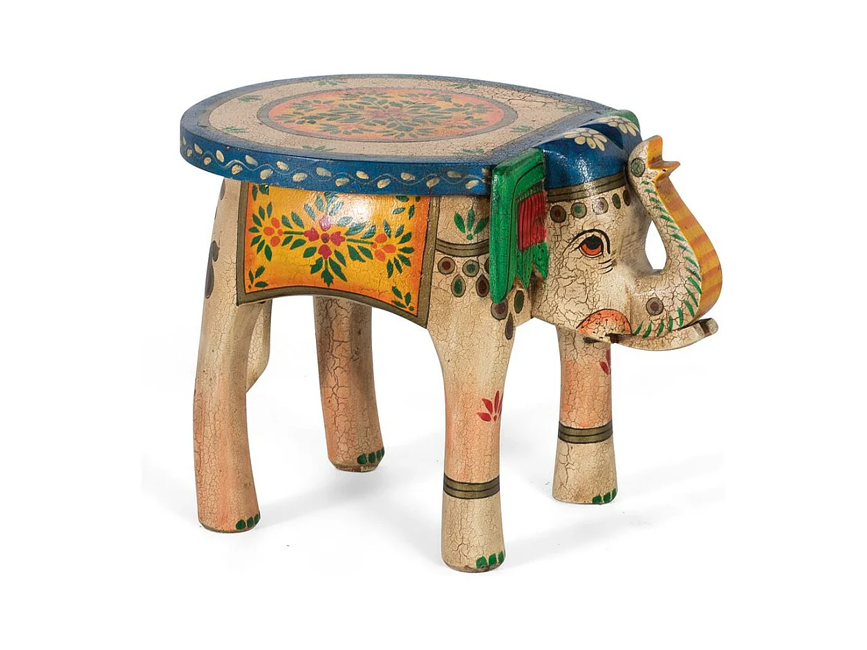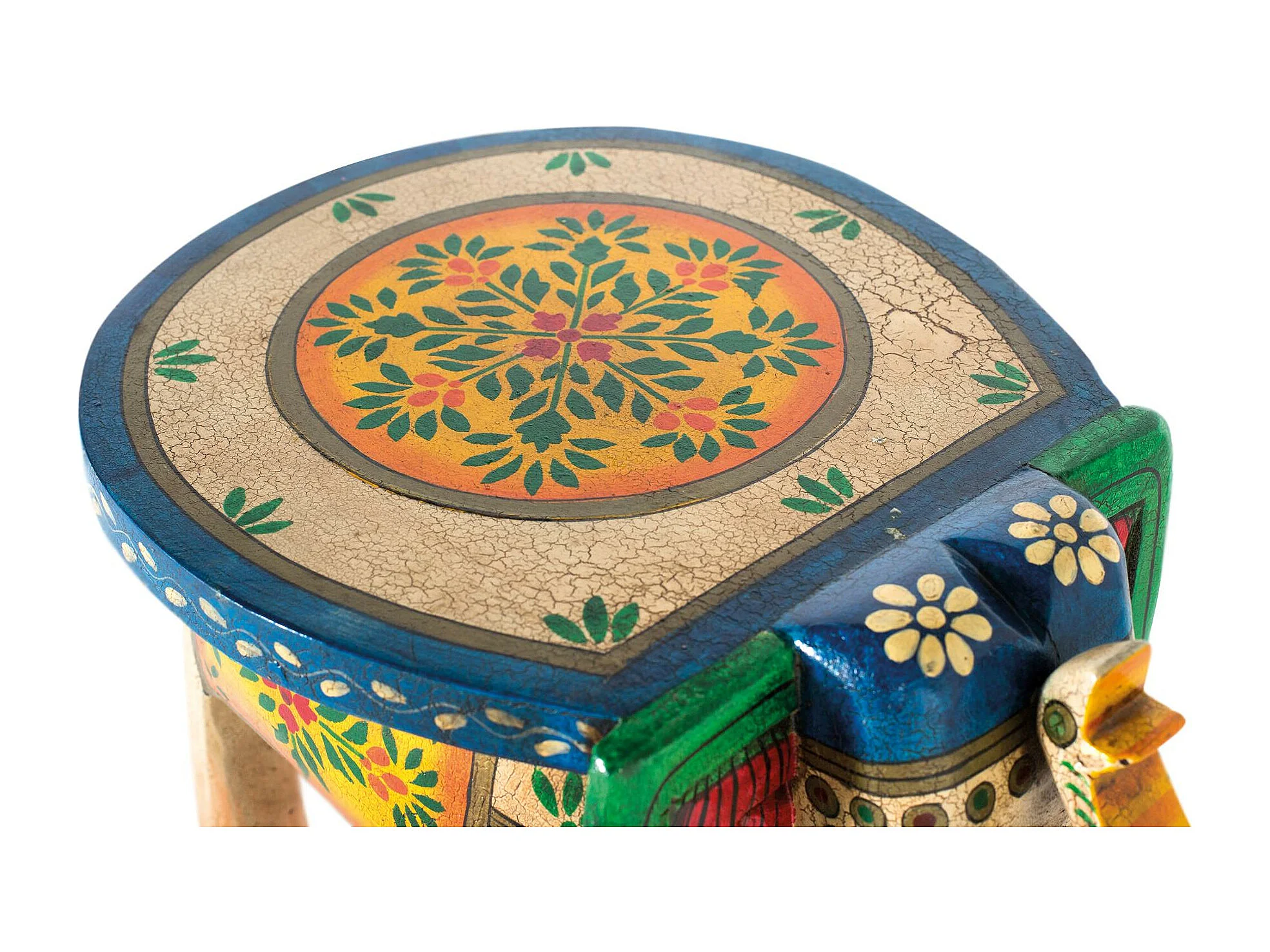 Tabouret en bois de manguier peint à la main avec détails multicolores