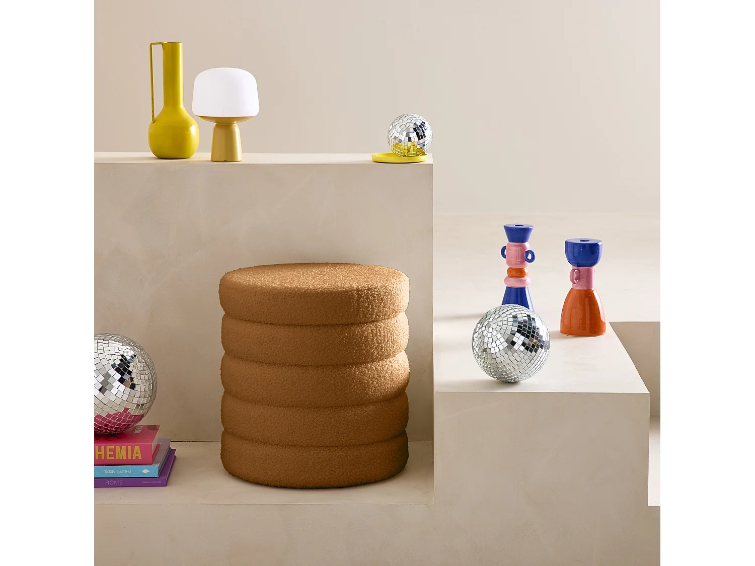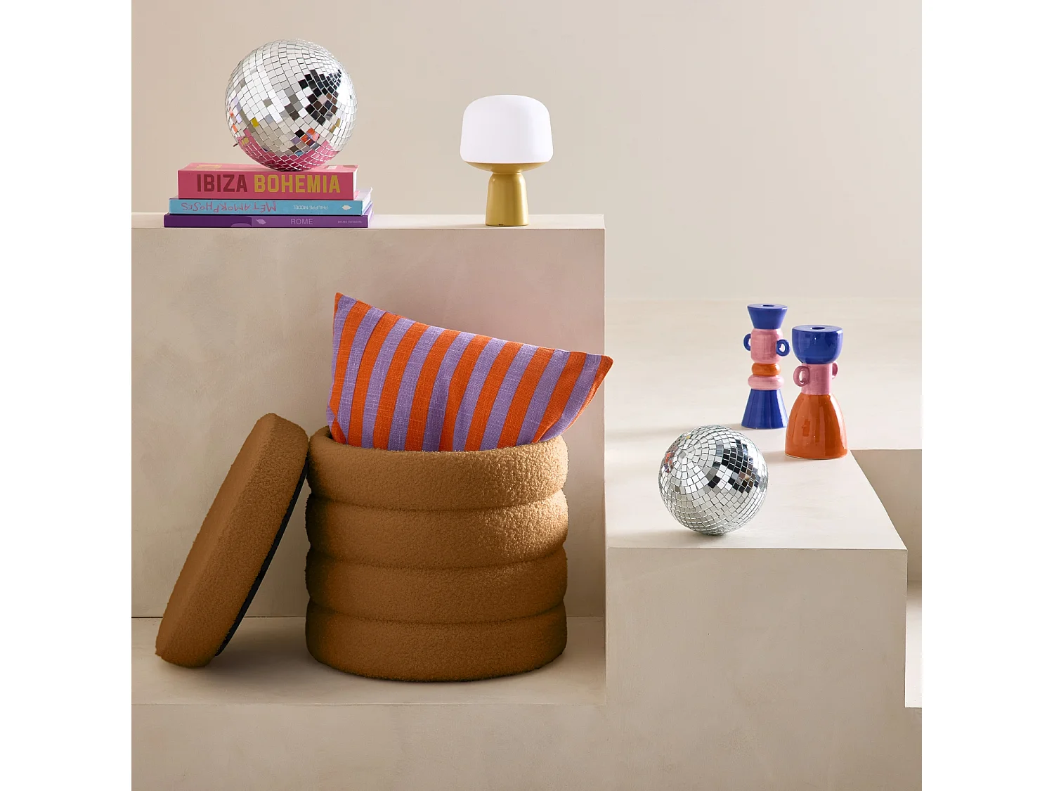 Tabouret en bouclettes rouille avec coffre de rangement intégré