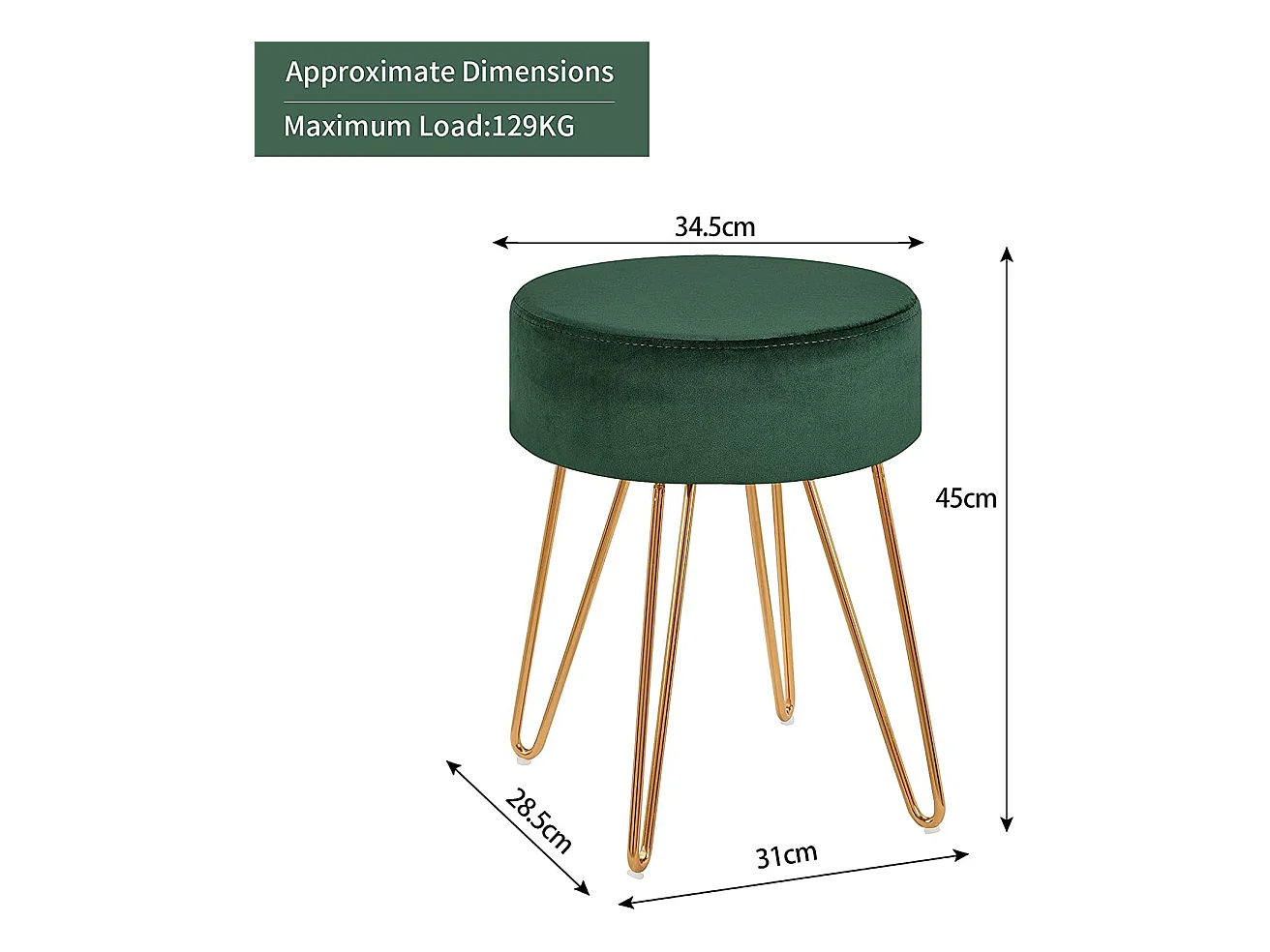 Tabouret bas Vert foncé et doré Velours FR75864