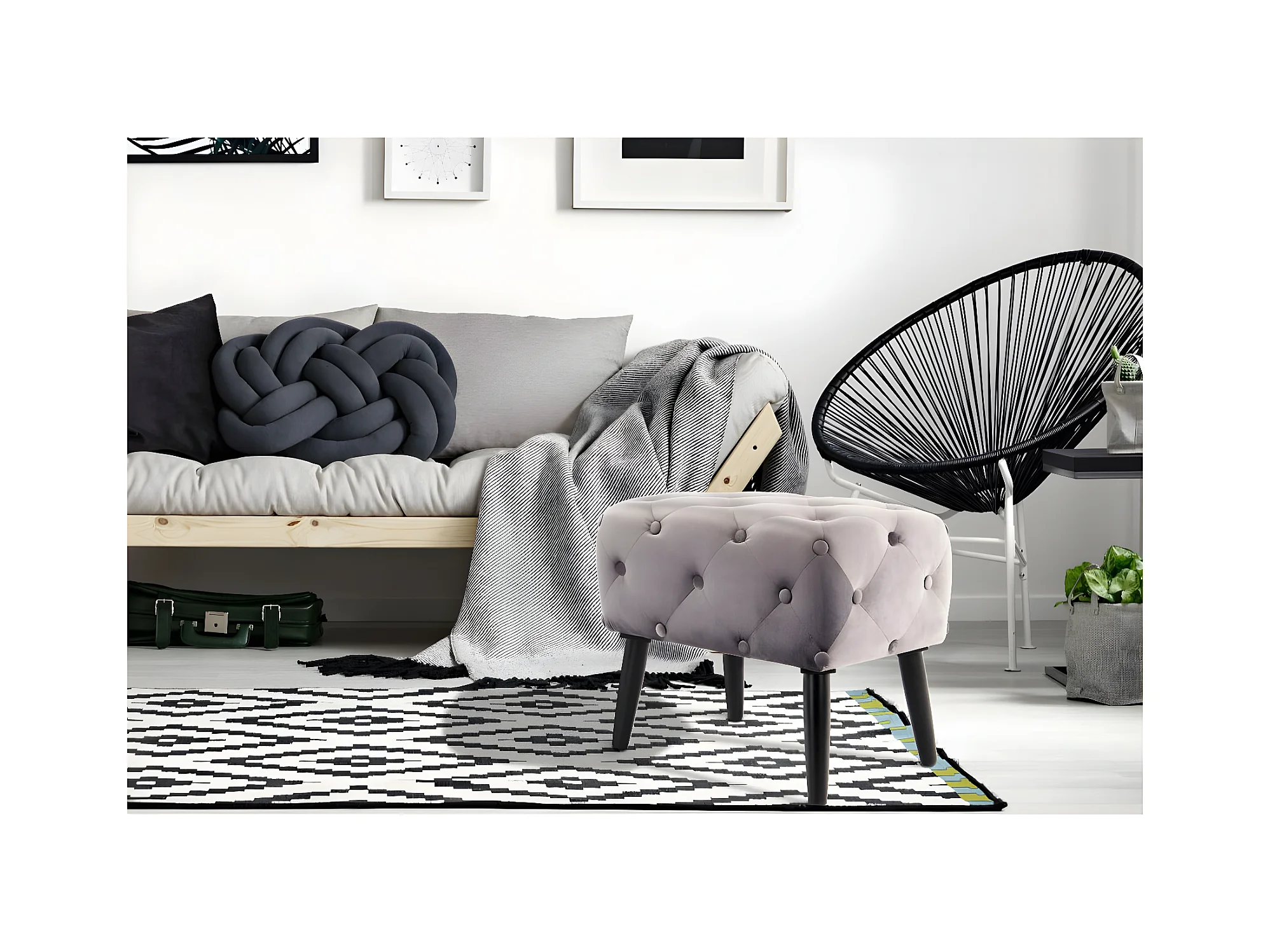 Tabouret avec pieds en bois Gris clair Velours REO90874
