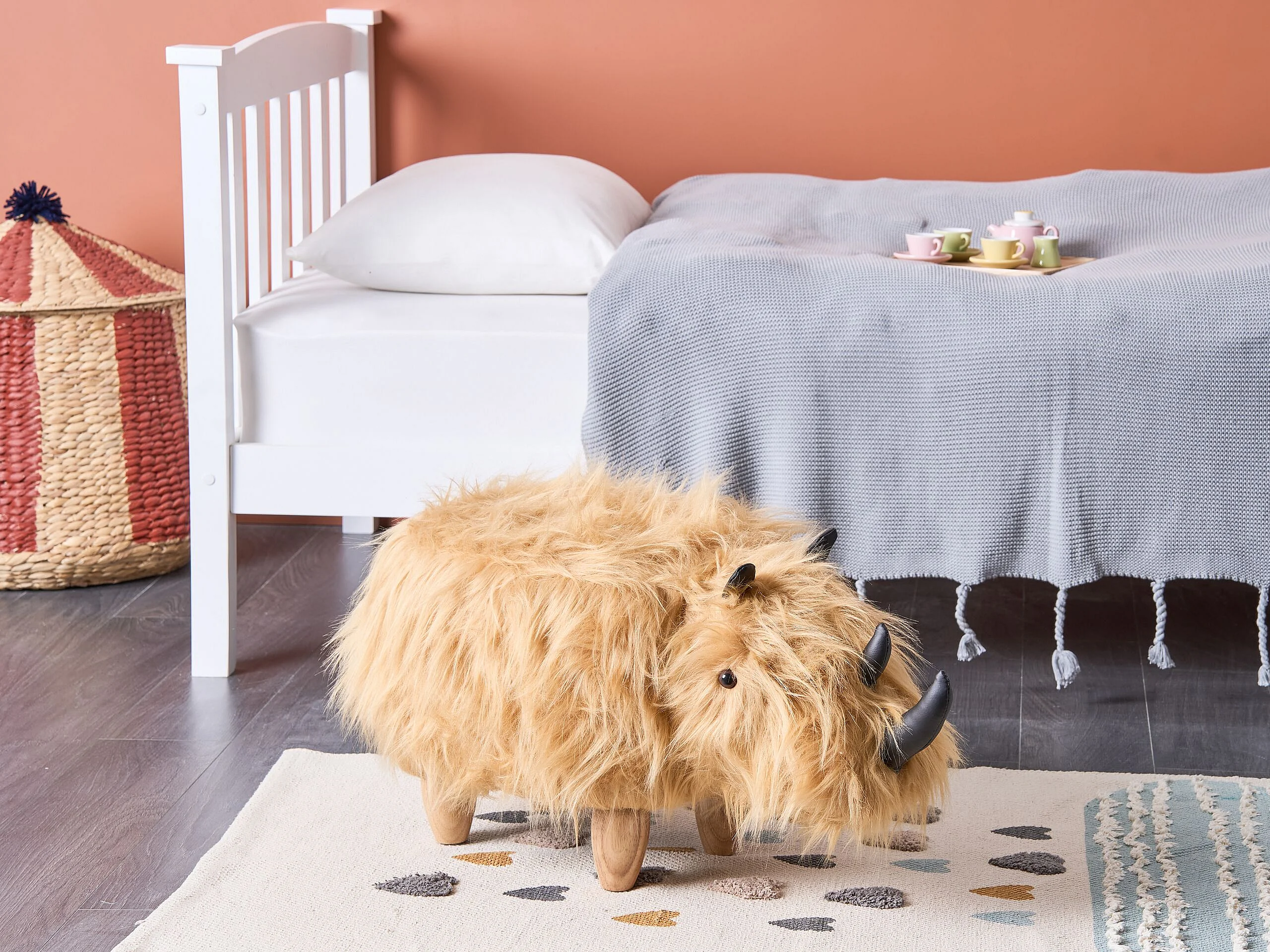 Tabouret animal WOOLLY Fourrure synthétique Beige sable
