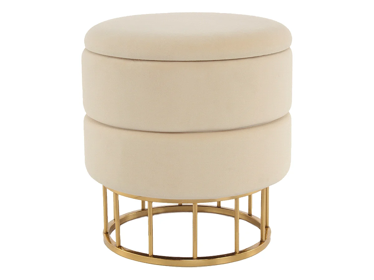 Tabouret bas avec pieds en bois Crème Velours FR33548