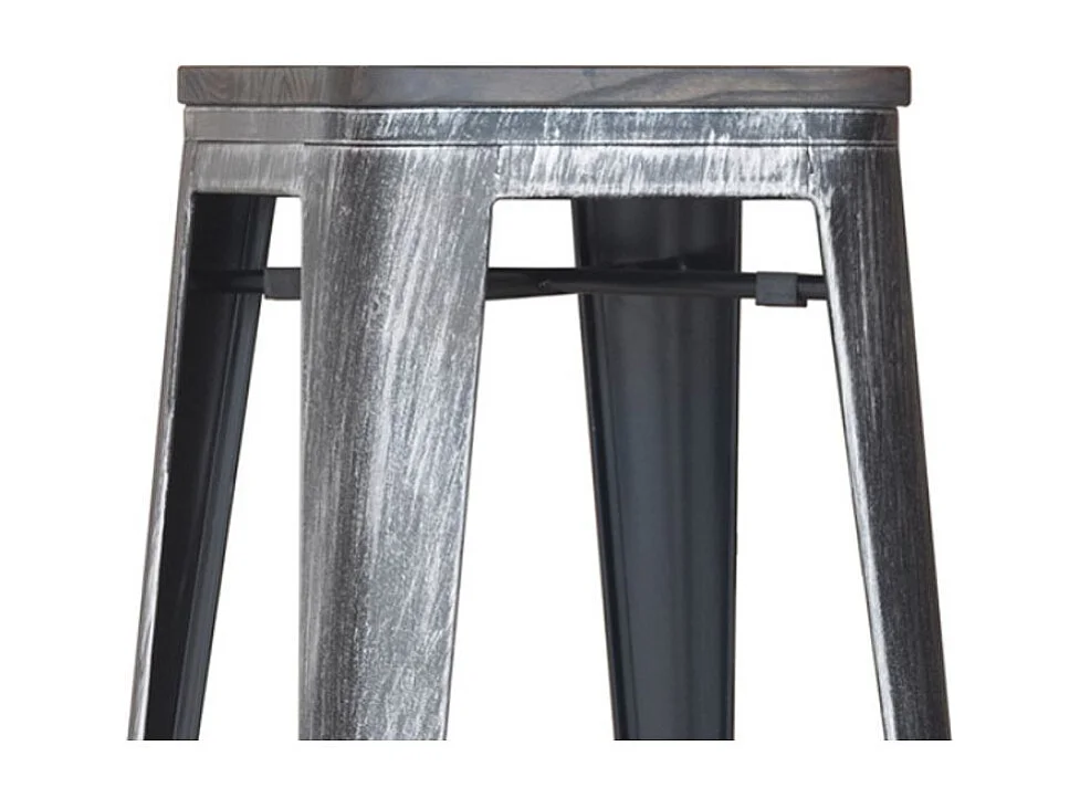 Tabouret haut acier vintage vieilli et assise en bois massif marron Reko 76cm