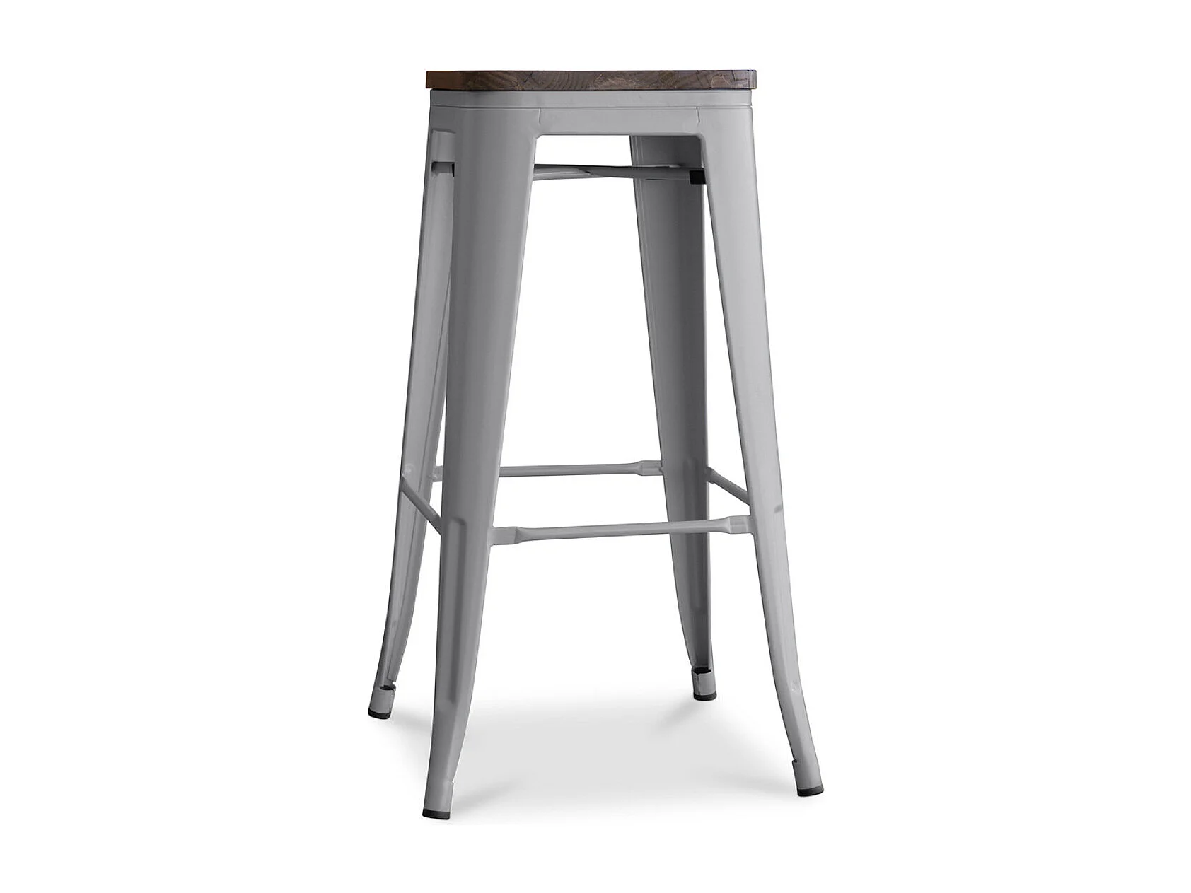 Tabouret haut industriel acier brillant et assise en bois massif marron Reko 76cm-Couleur Gris clair