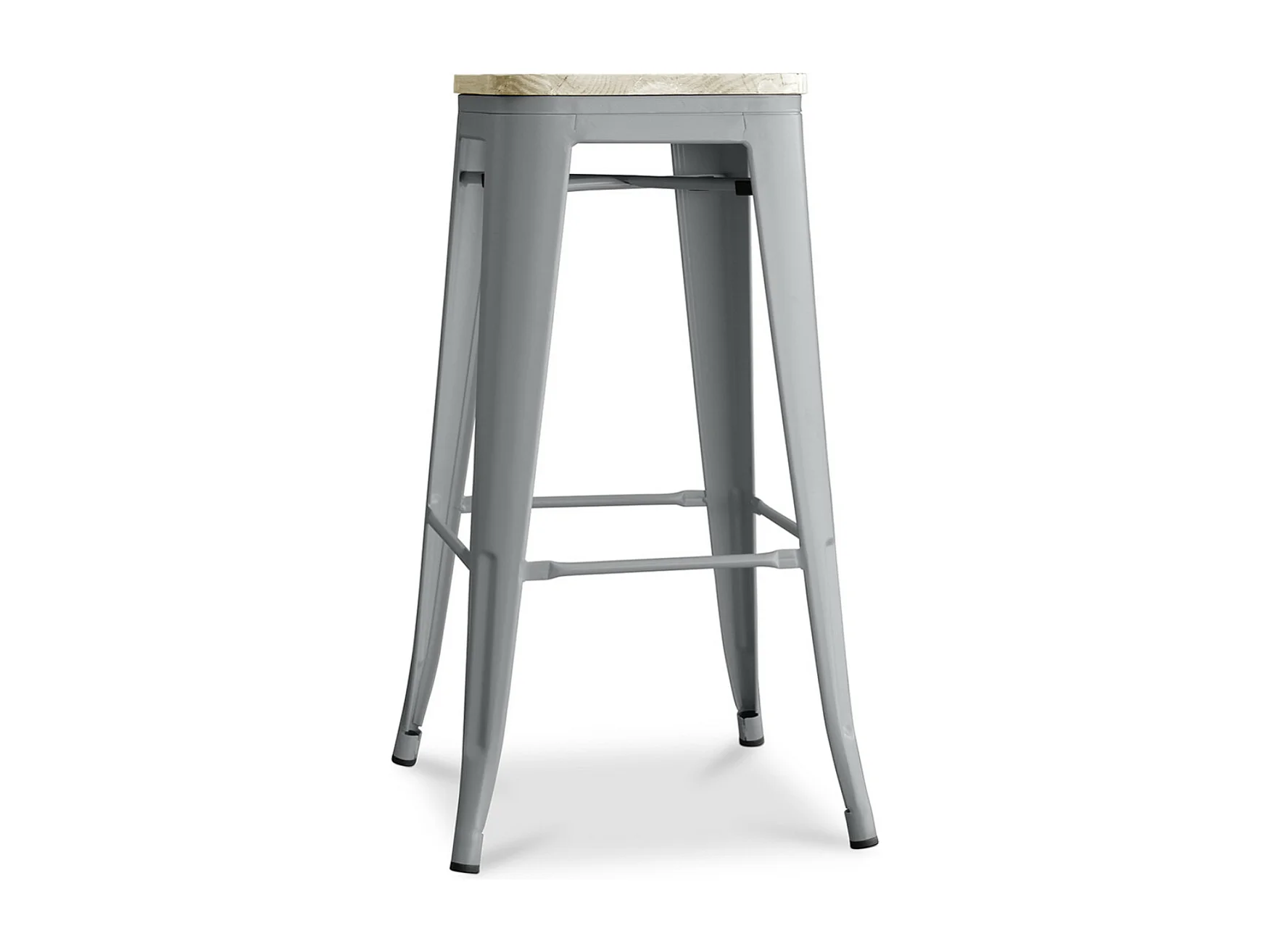 Tabouret haut industriel acier brillant et assise en bois massif naturel Reko 76cm-Couleur Gris clair