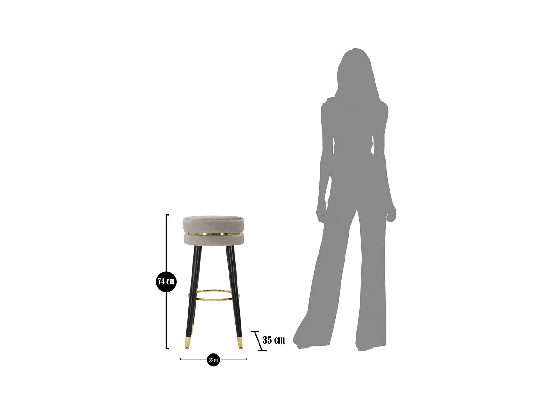 Tabouret Haut MF437, Gris, 35x35x74 cm, Seven Design