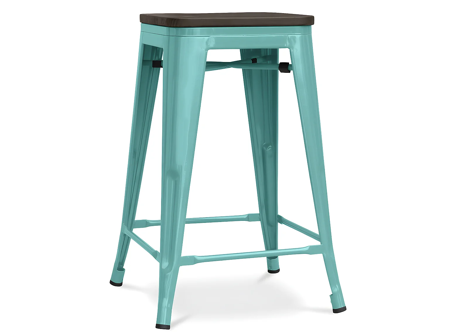 Tabouret industriel acier brillant et assise en bois massif marron Reko 60cm-Couleur Bleu turquoise