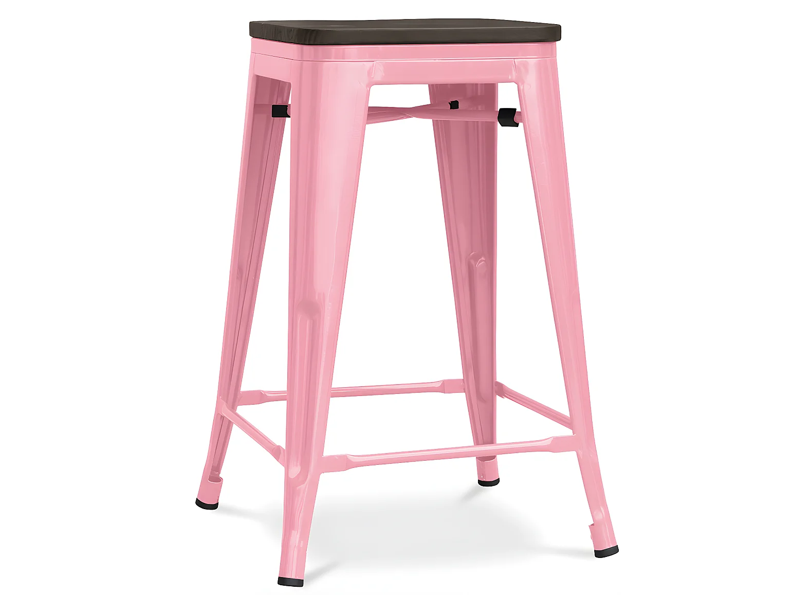 Tabouret industriel acier brillant et assise en bois massif marron Reko 60cm-Couleur Rose clair