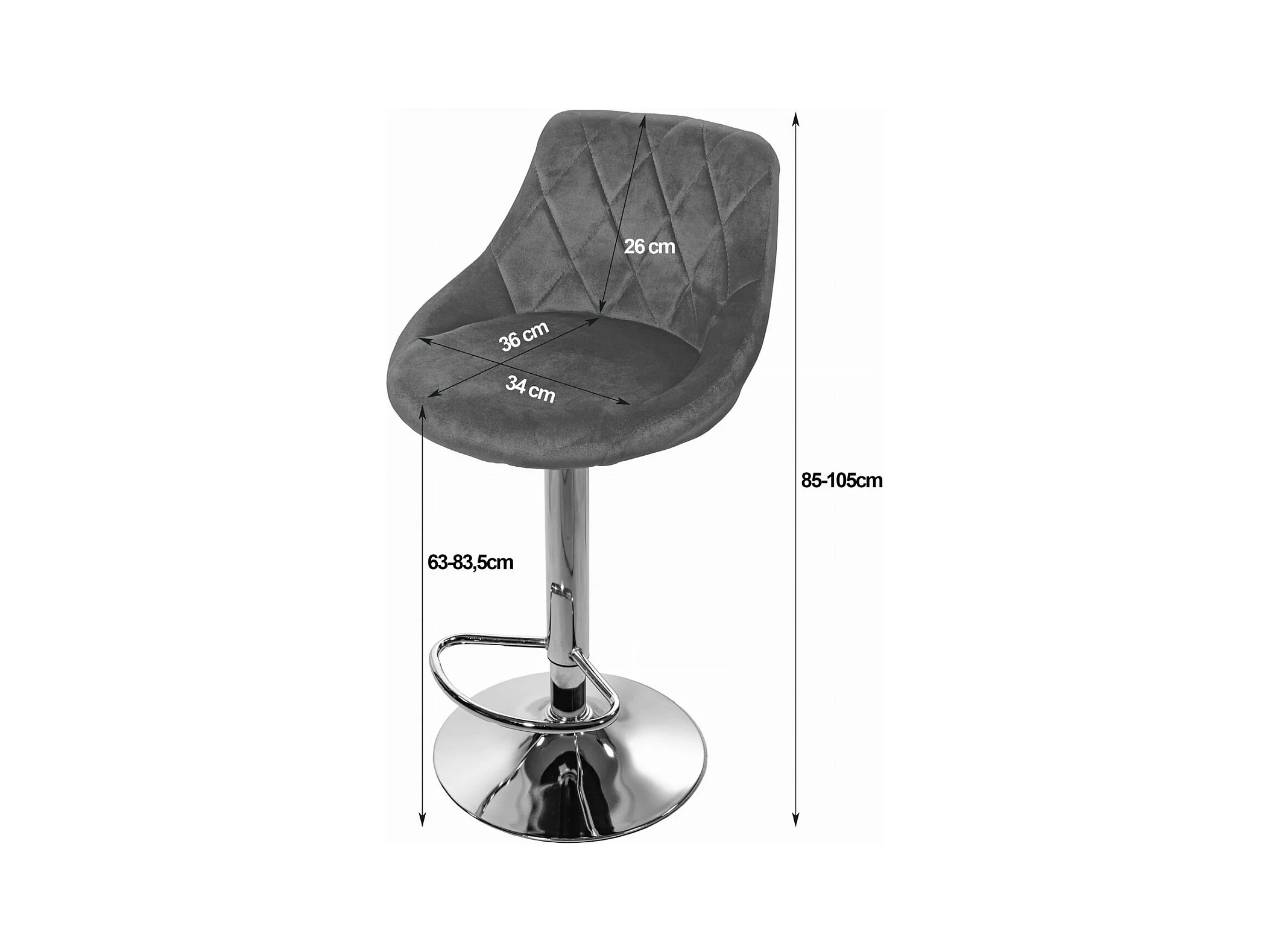 Tabouret Chaise de Bar Bicolore en Velours Gris ardoise et Noir H 110 cm