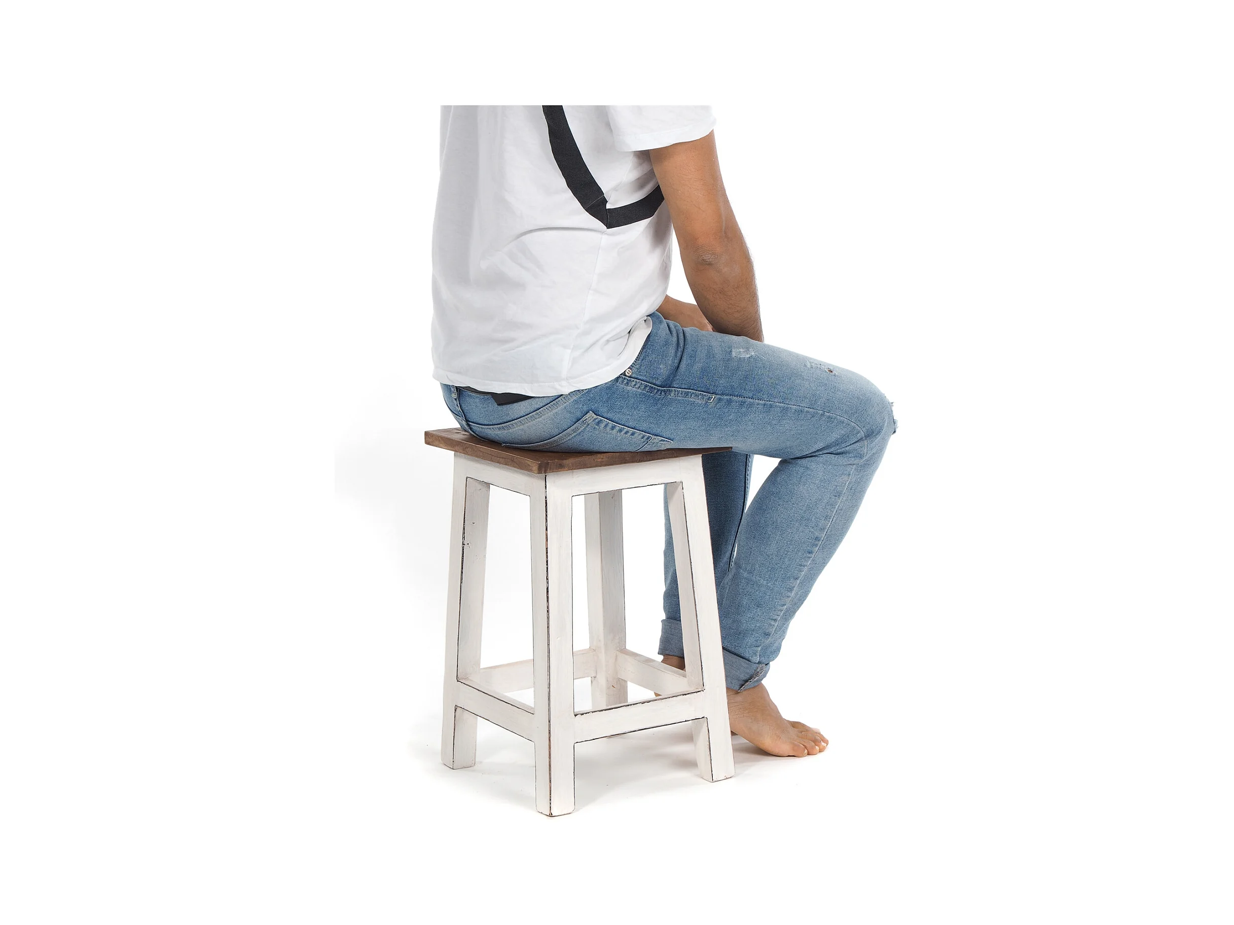 TABOURET MADERO bois de recyclage 06 weiß-landhaus