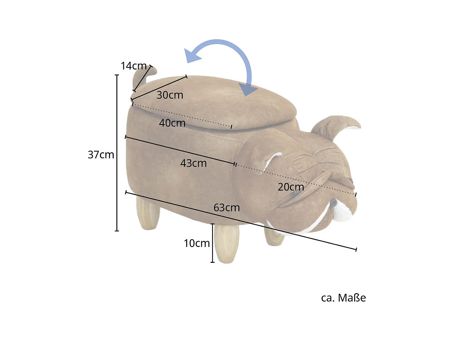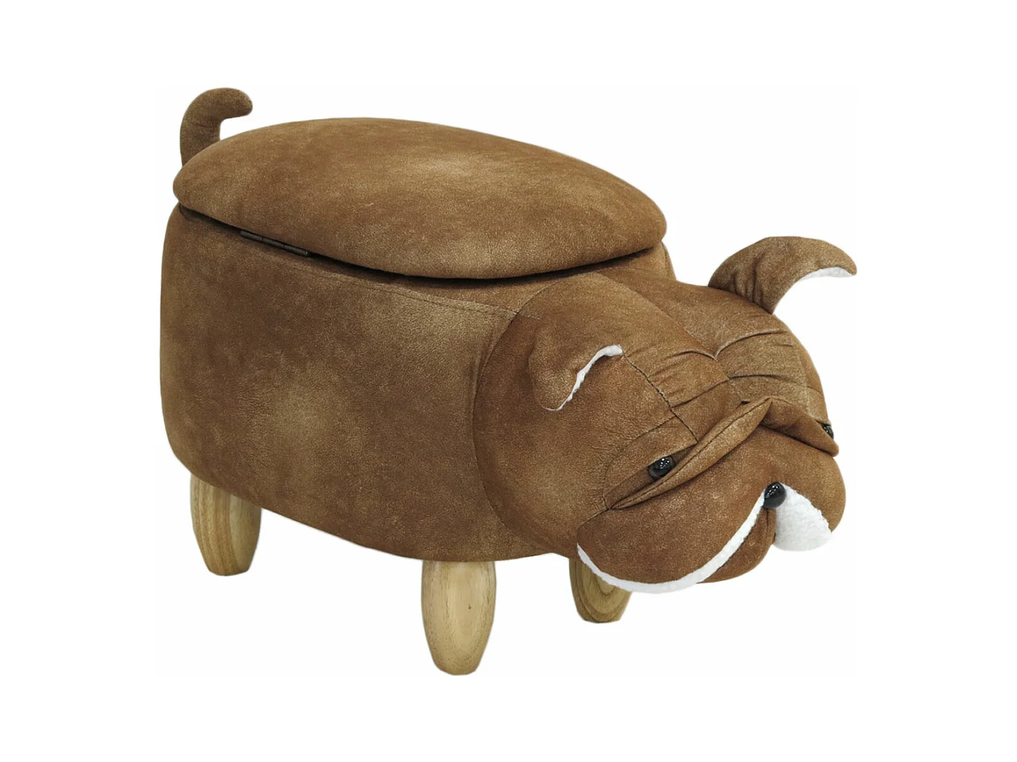 Tabouret pour enfant ANIMAL STORAGE avec espace de rangement Rembourré Chien Carlin marron
