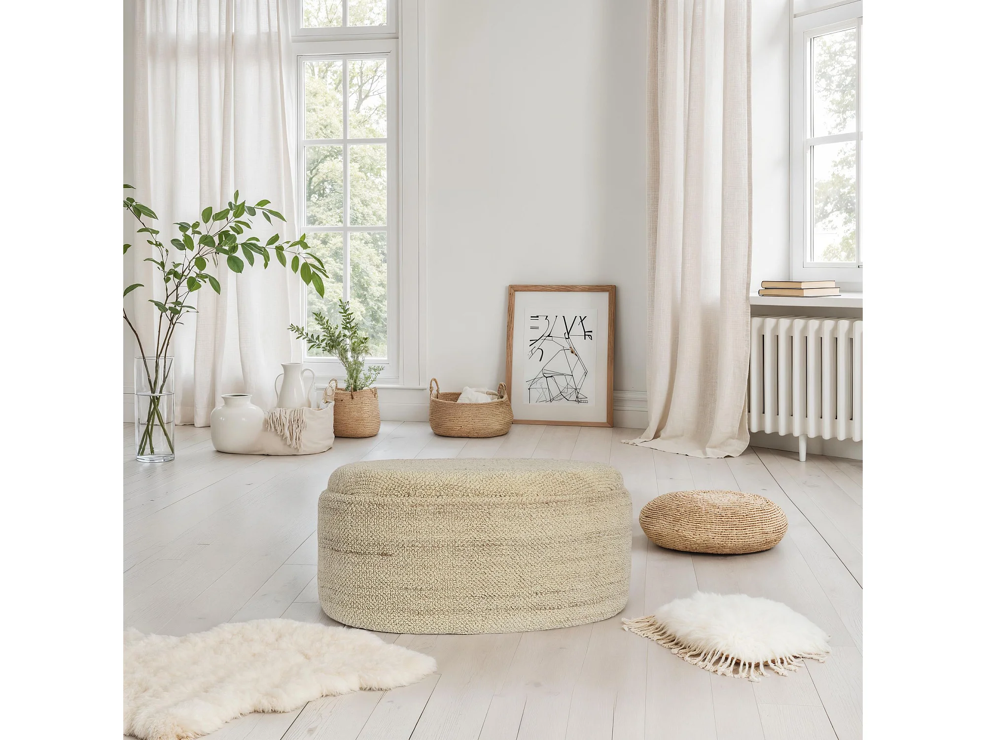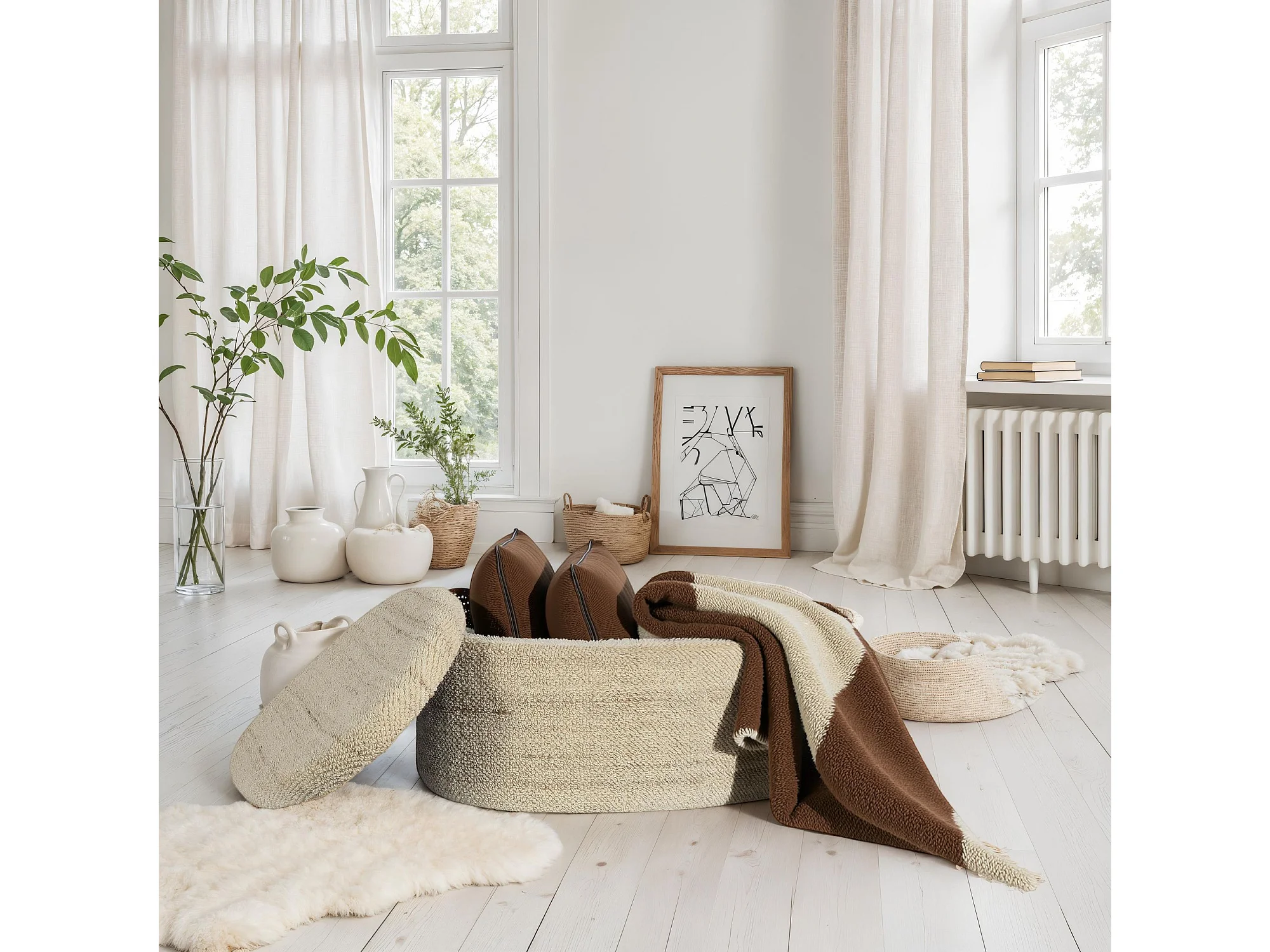 Tabouret Rangement Laine Marron Ovale 81 cm avec Couvercle Amovible