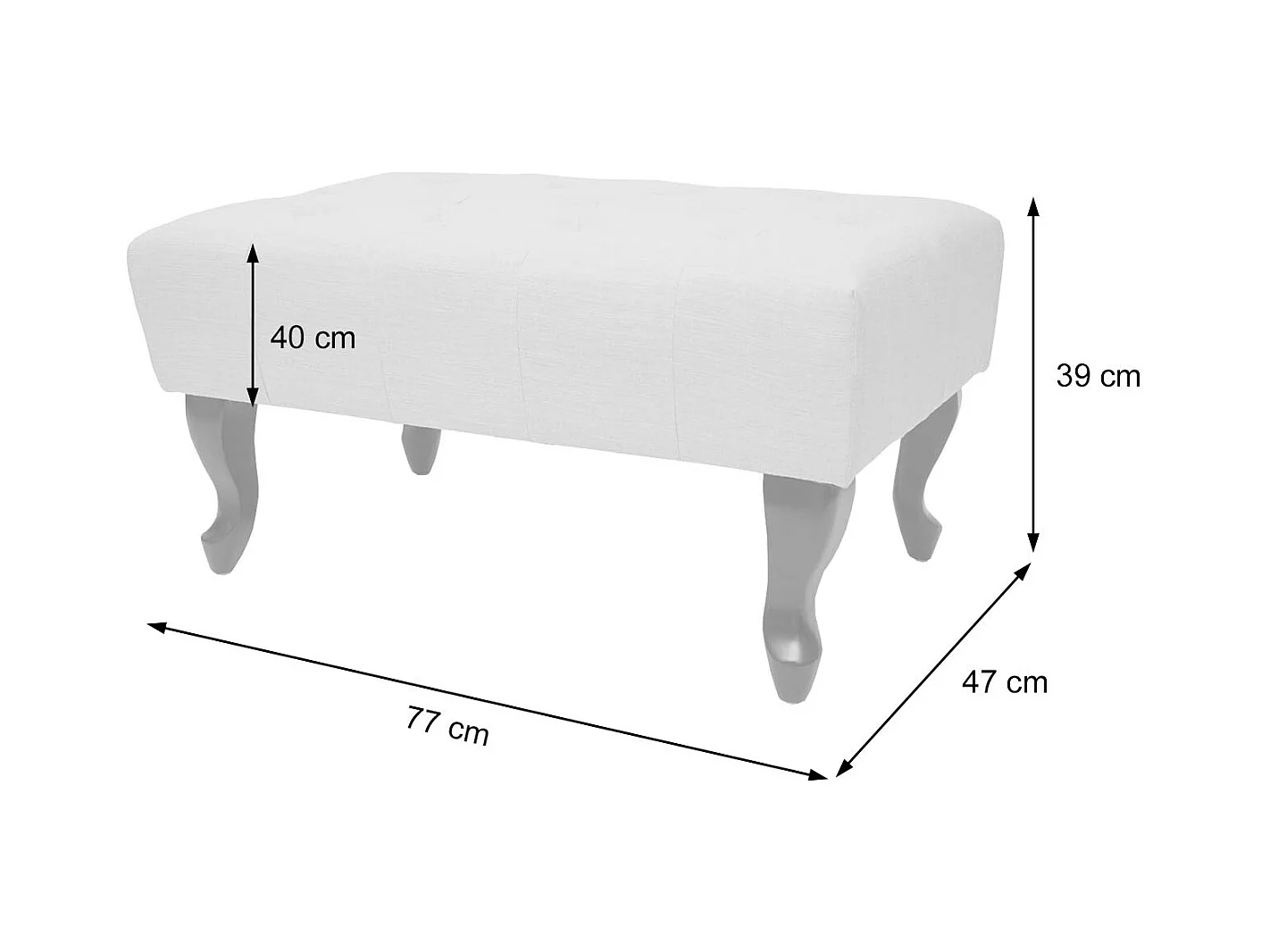 Banc capitonné chesterfield tabouret tissu grise 77 x 47 x 39 cm 04_0003731