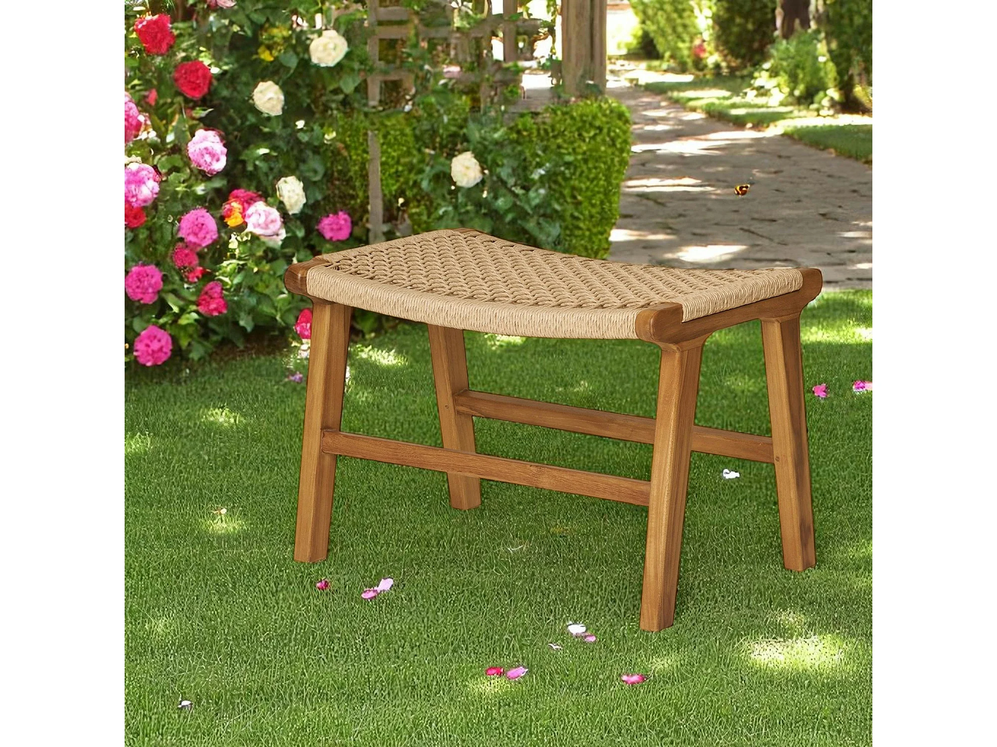 Tabouret repose-pieds en teck et fibre naturelle tressée MENDOZA