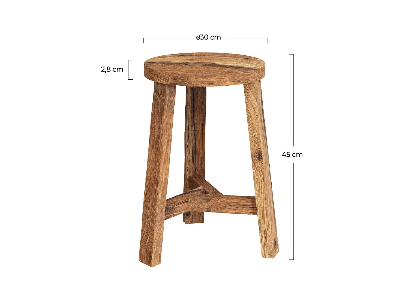 Tabouret rond en bois de teck recyclé H45 cm - Léa