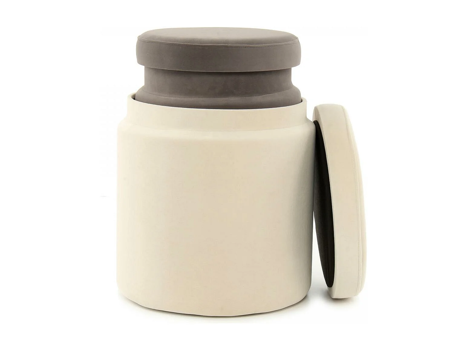 Pouf coffre de rangement en tissu texturé beige TINETIA