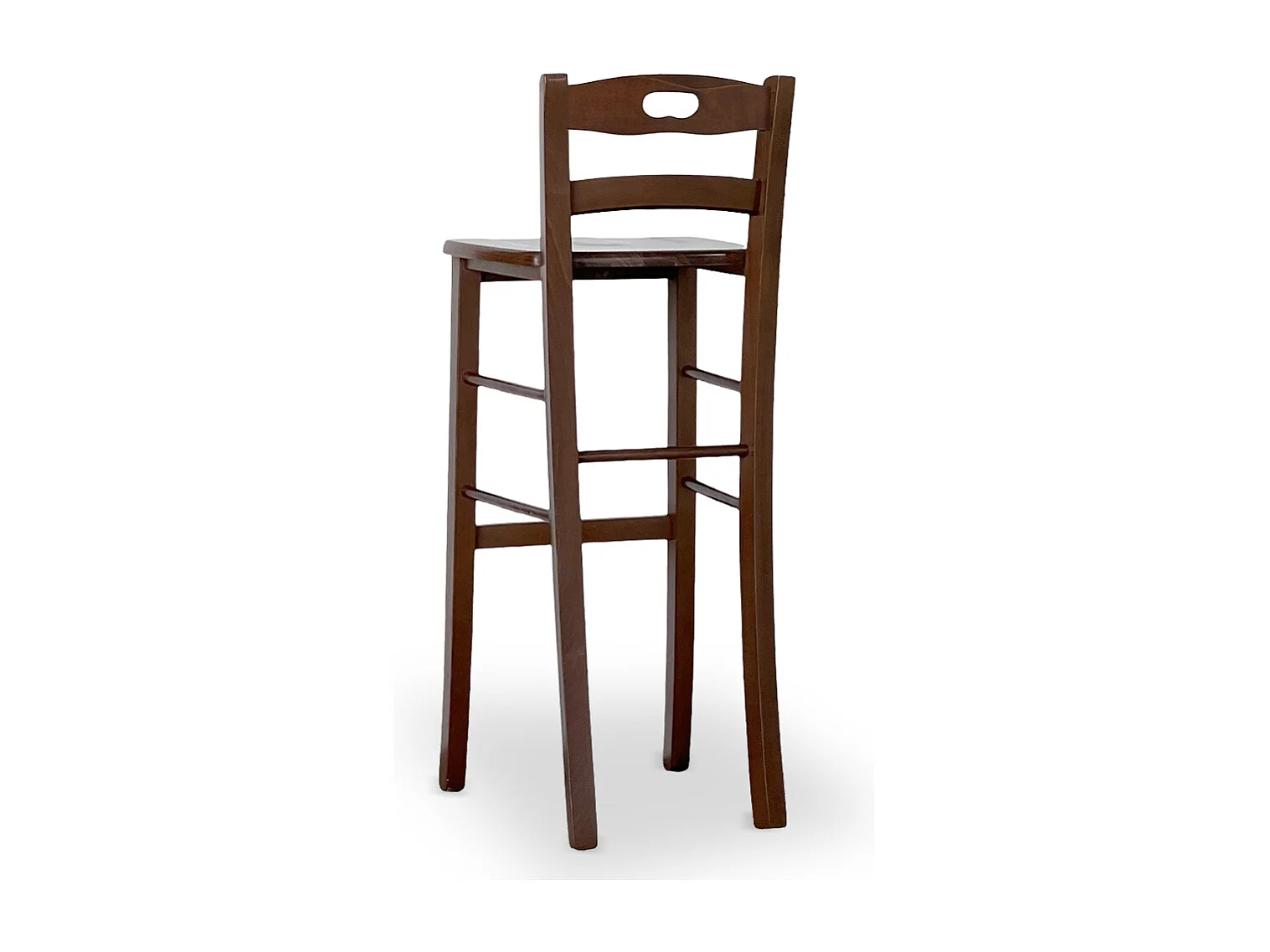 Tabouret snack h 80 cm en bois de noyer foncé avec poignée et assise en bois massif