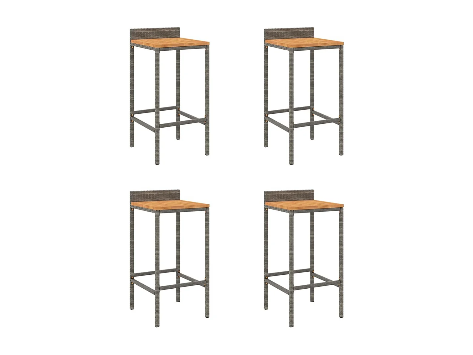 Tabourets de bar 4 pcs gris résine tressée et bois d'acacia