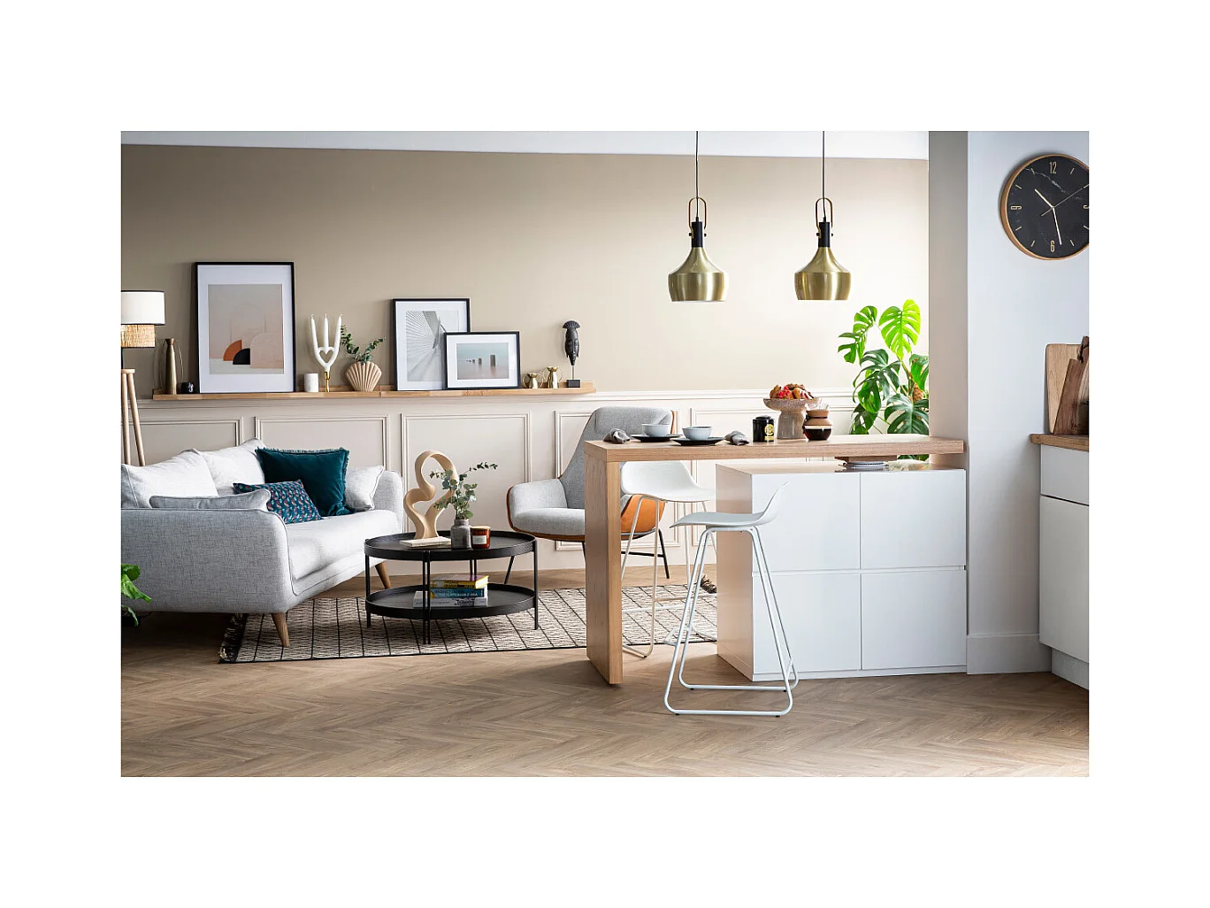 Tabouret de bar scandinave pivotant blanc et bois clair GARBO