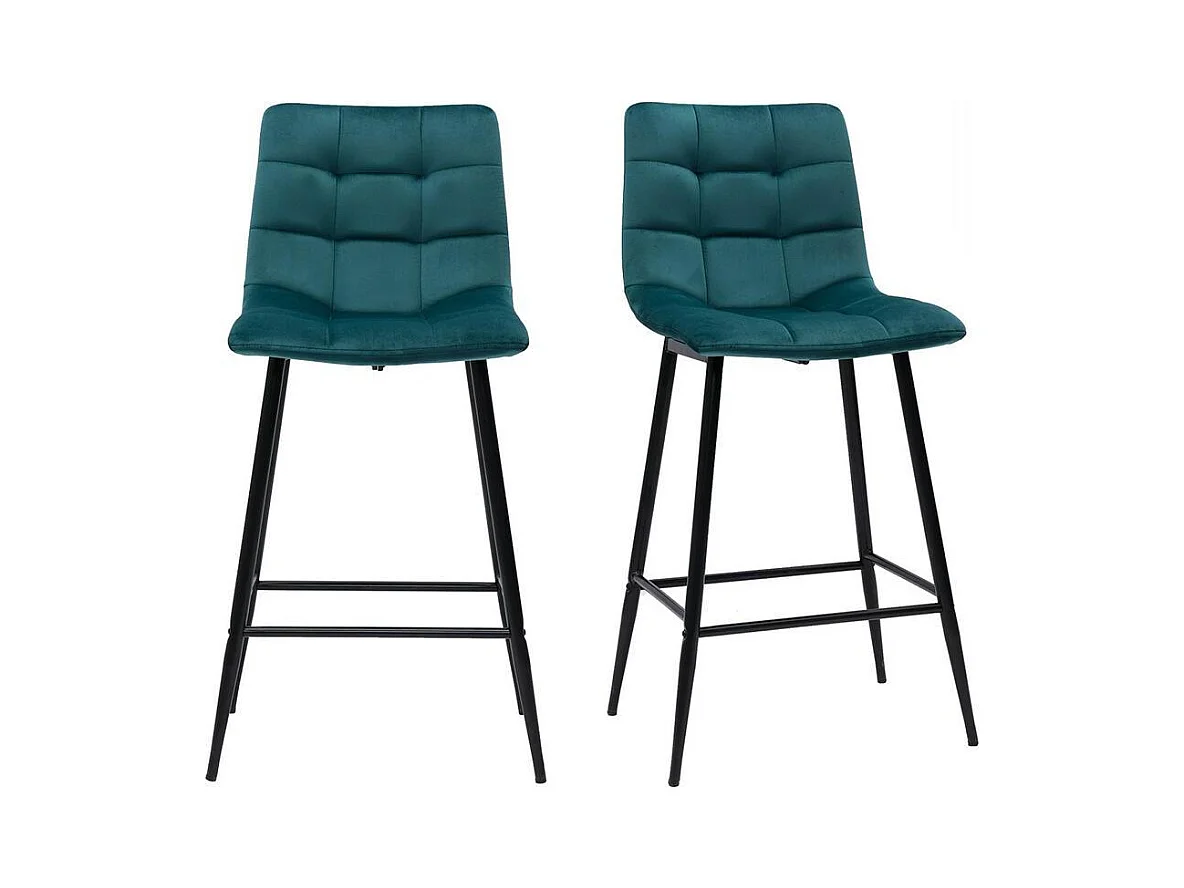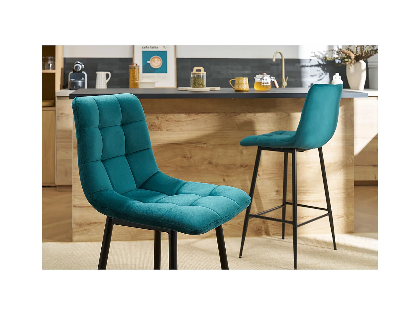Tabourets de bar design en velours bleu pétrole H65 cm (lot de 2) MAXWELL
