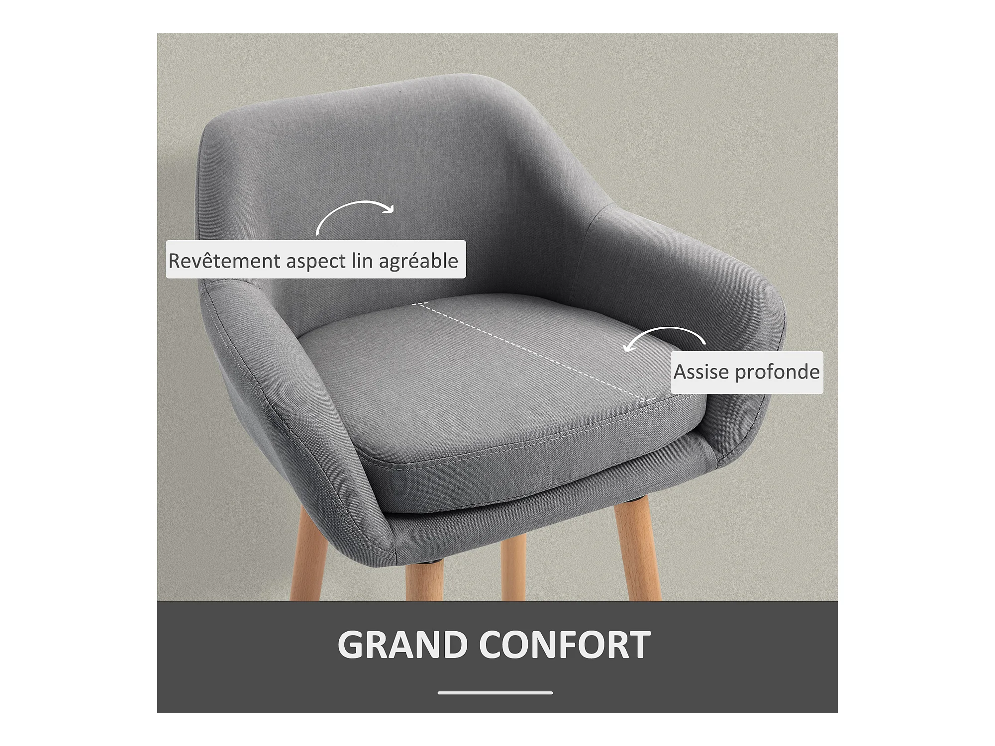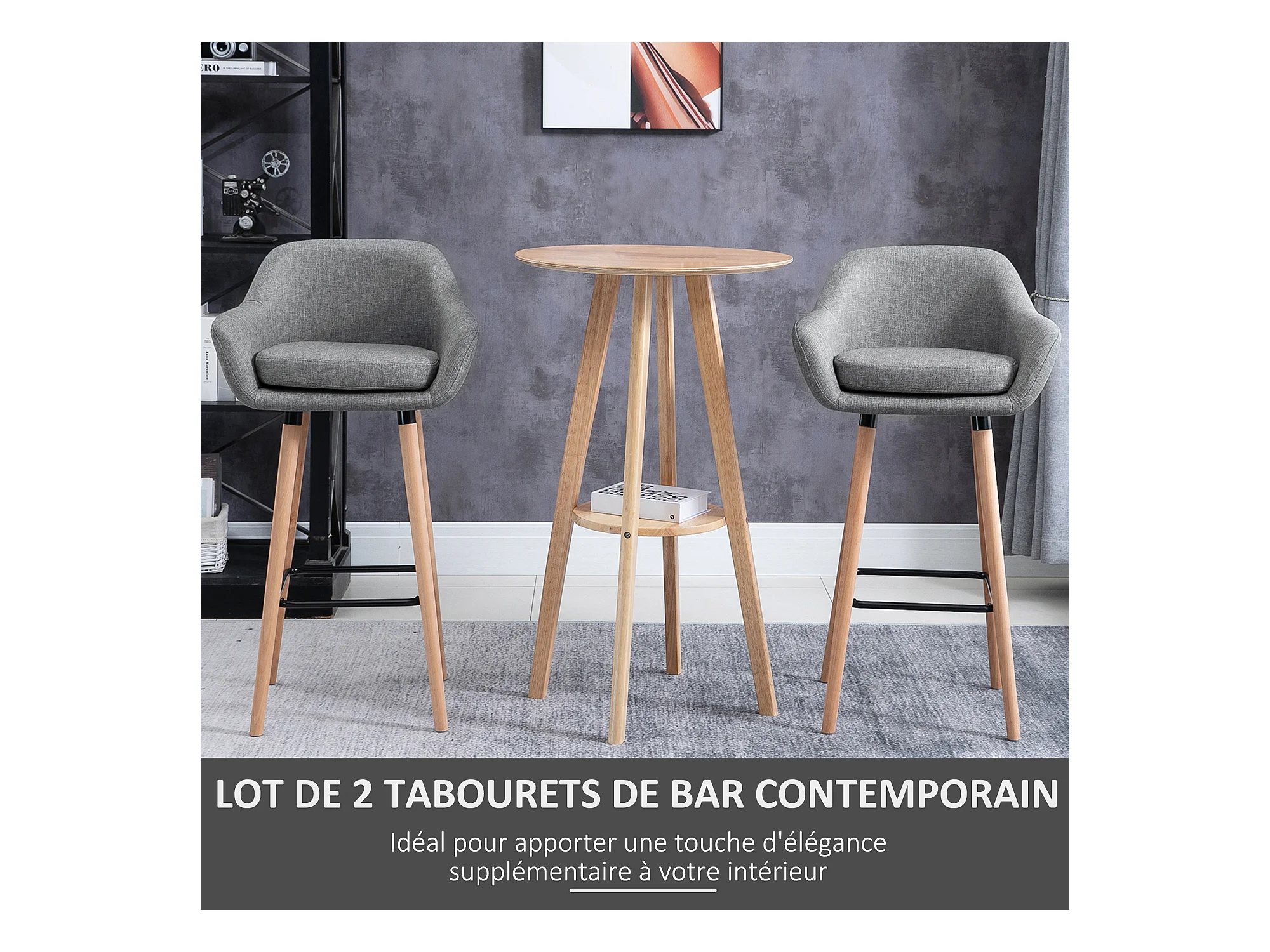 Tabourets de bar design scandinave - lot de 2 tabourets de bar grand confort avec repose-pieds et accoudoirs - bois de hêtre lin gris chiné
