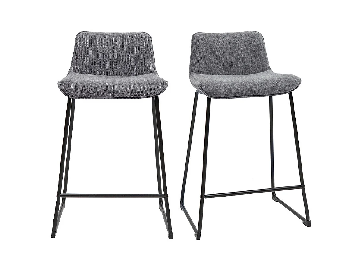 Tabourets de bar en tissu effet velours texturé gris et métal H65 (lot de 2) BOOST