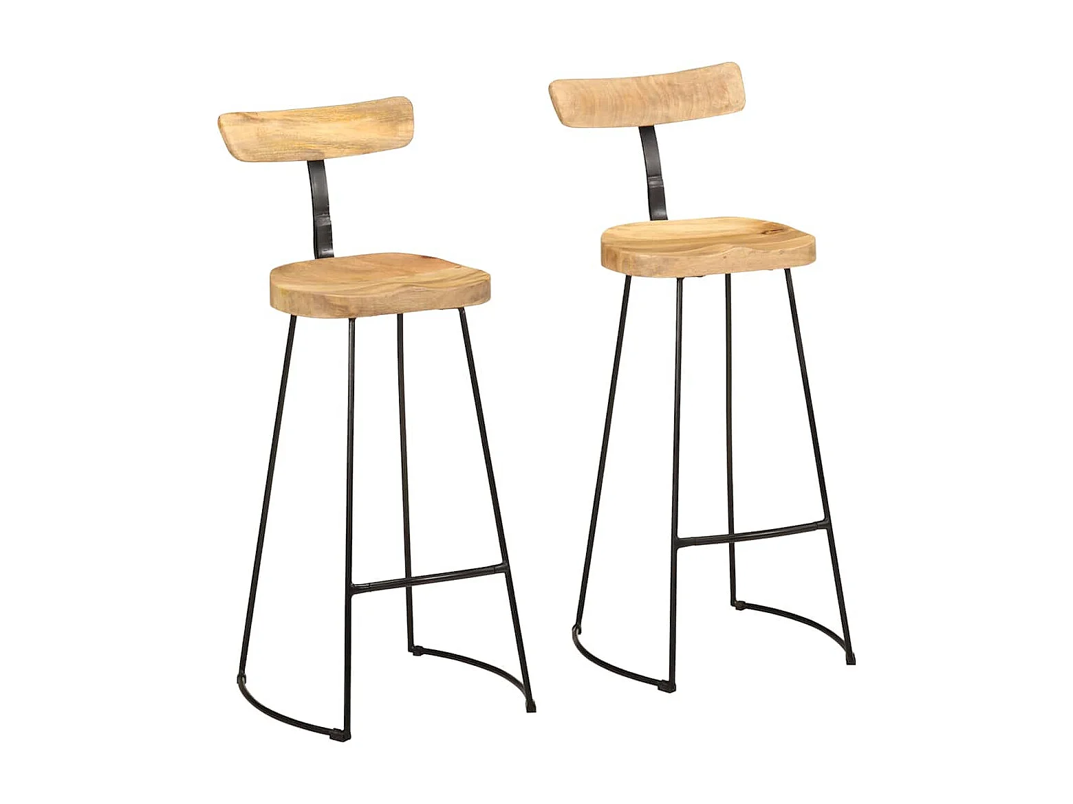 Tabourets de bar lot de 2 pcs bois massif manguier brut