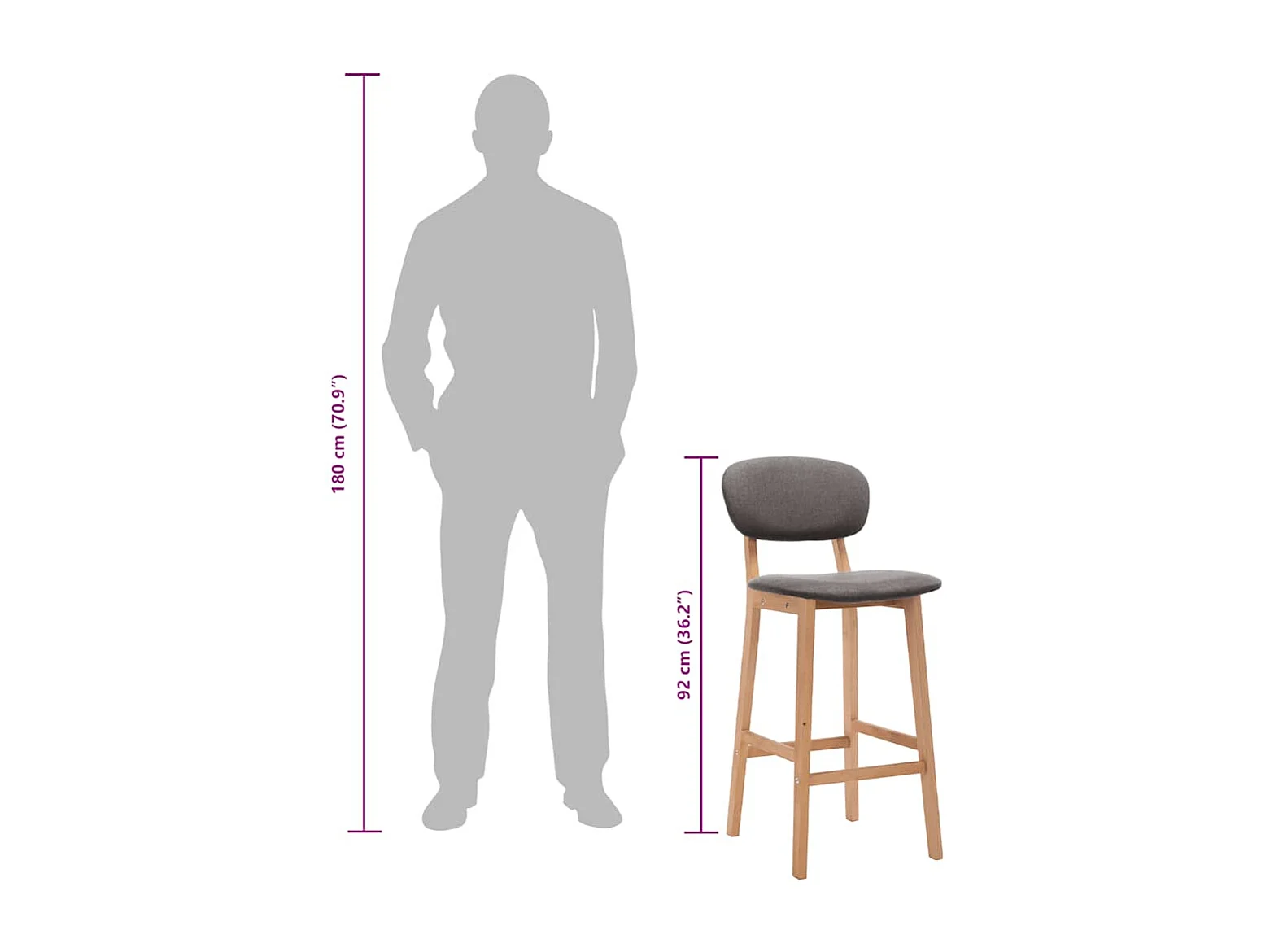 Tabourets de bar lot de 2 gris foncé tissu et bois courbé