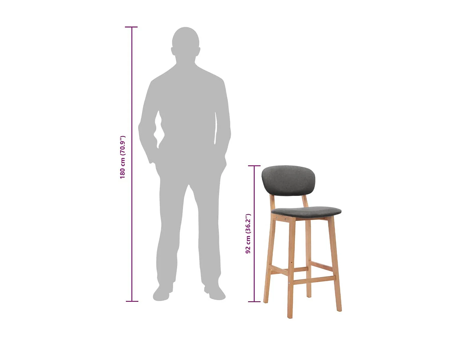 Tabourets de bar lot de 2 gris foncé tissu et bois courbé