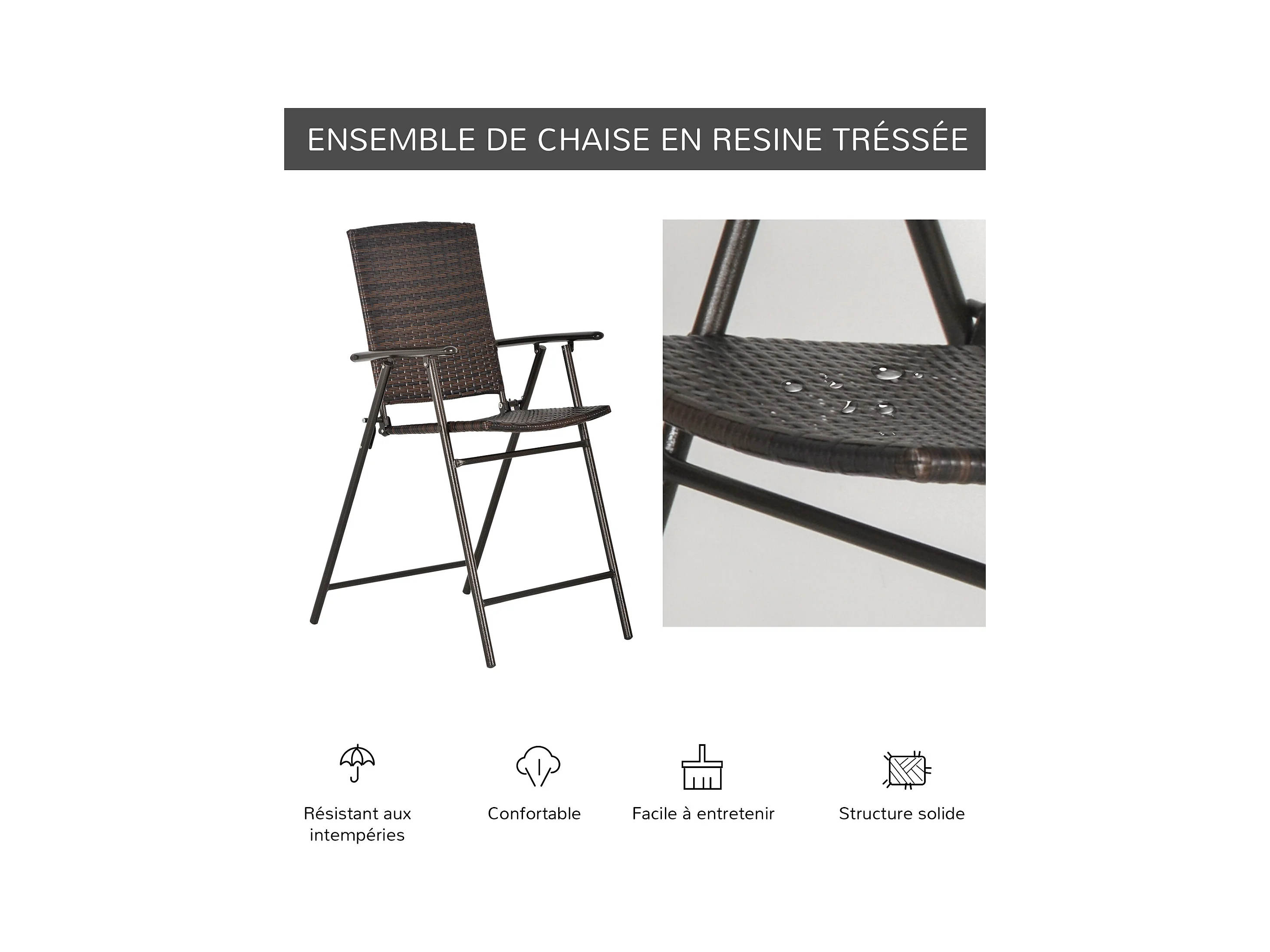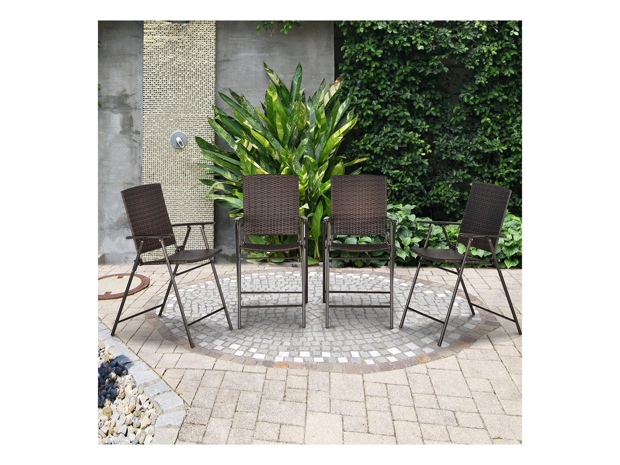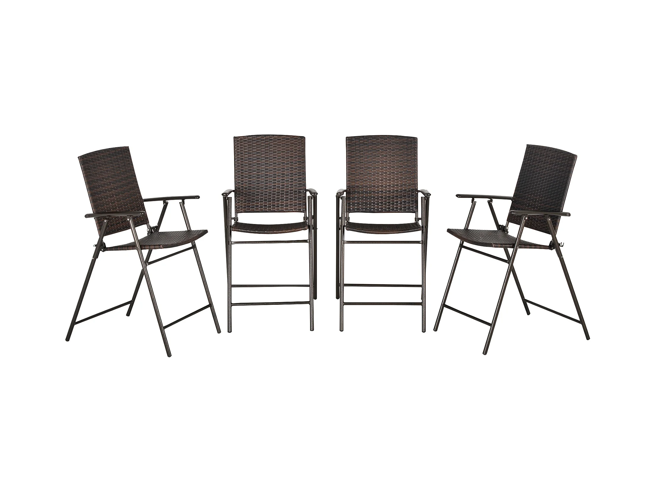 Tabourets de bar pliable style colonial - lot de 4 tabourets de bar - repose-pied + accoudoirs - métal époxy résine tressée chocolat