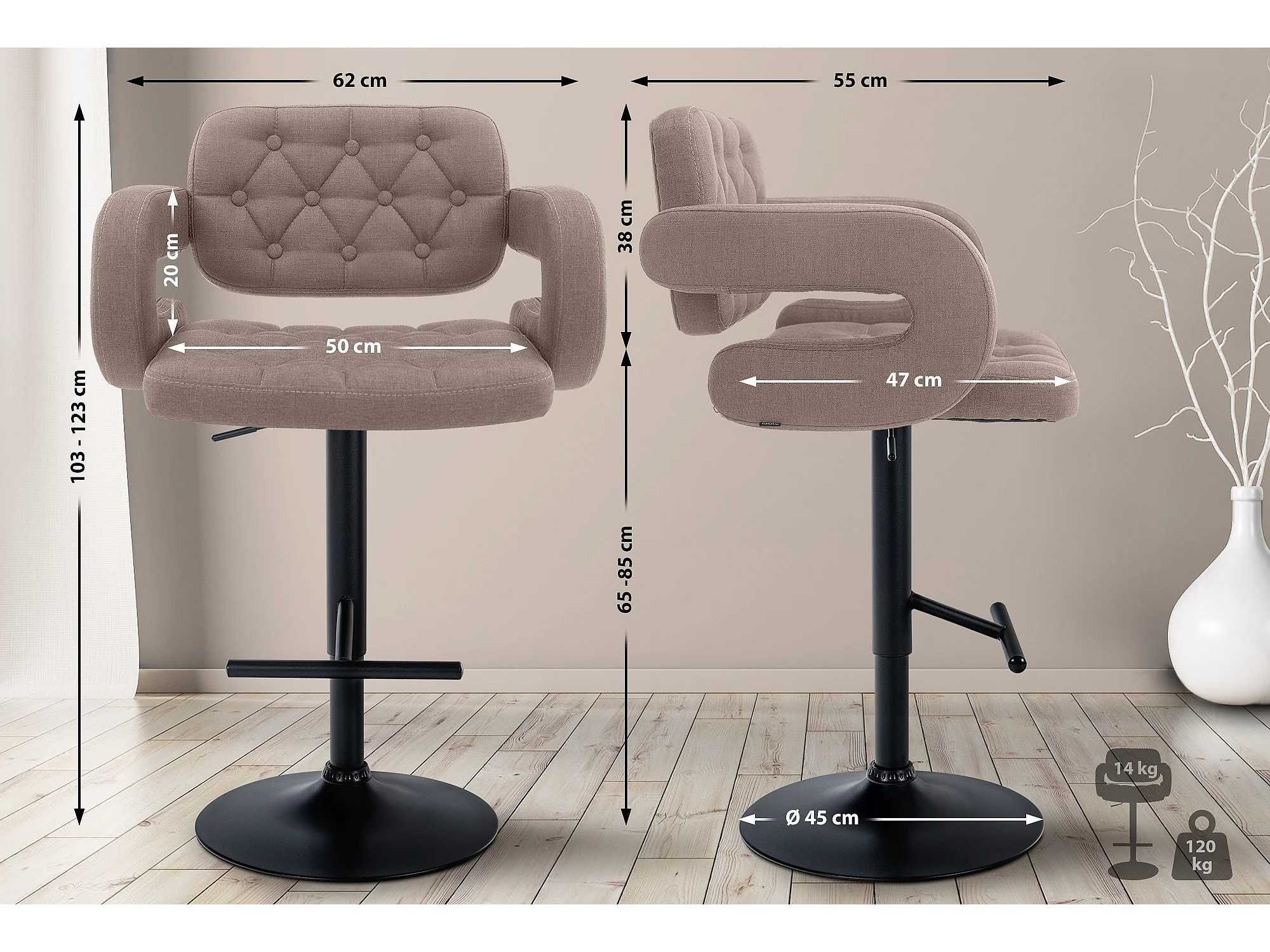 Tabouret de bar - Tissu & Noir - Taupe - Braga