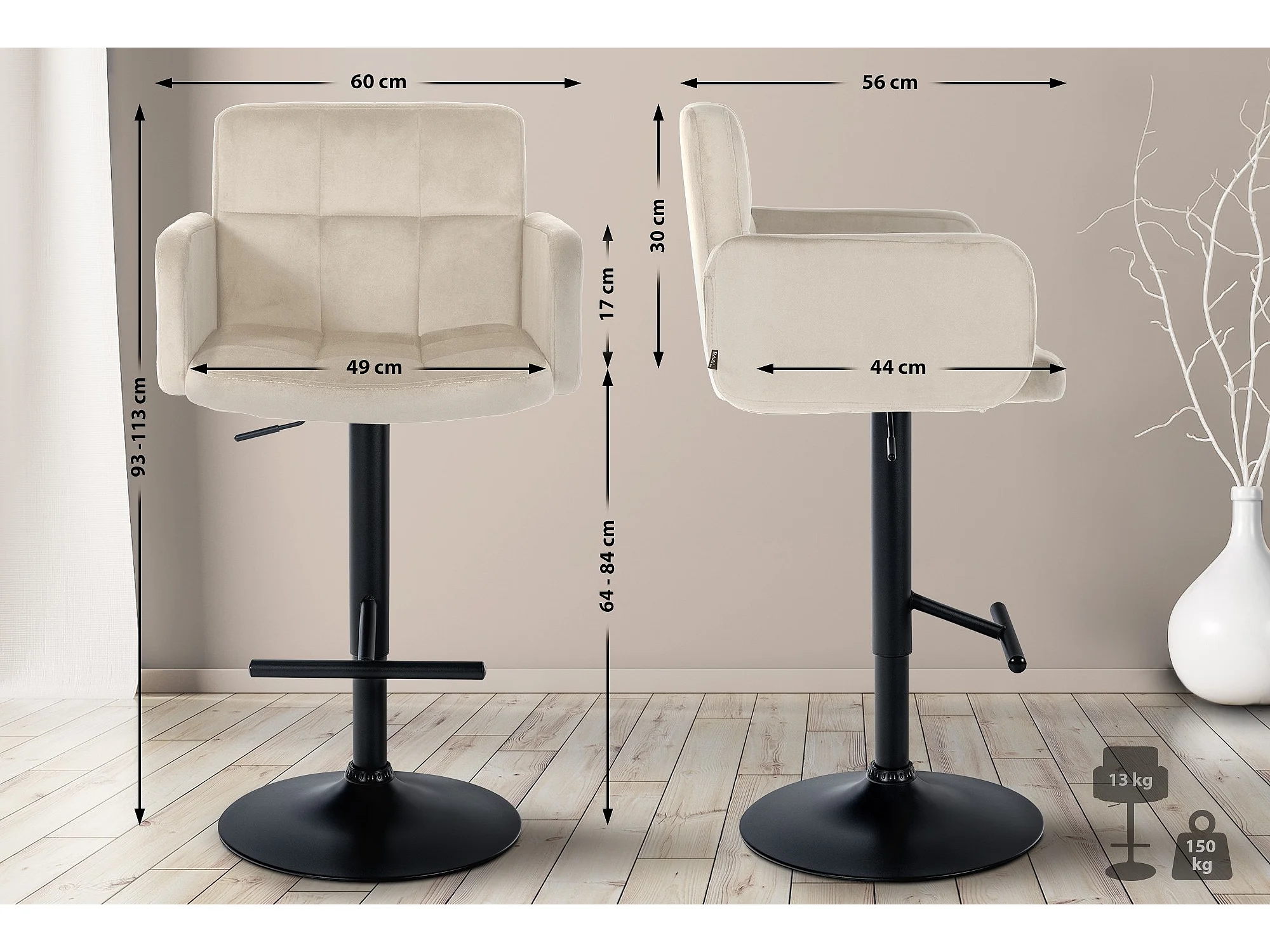 Tabouret de bar - Velours & Noir - Crème - Braga