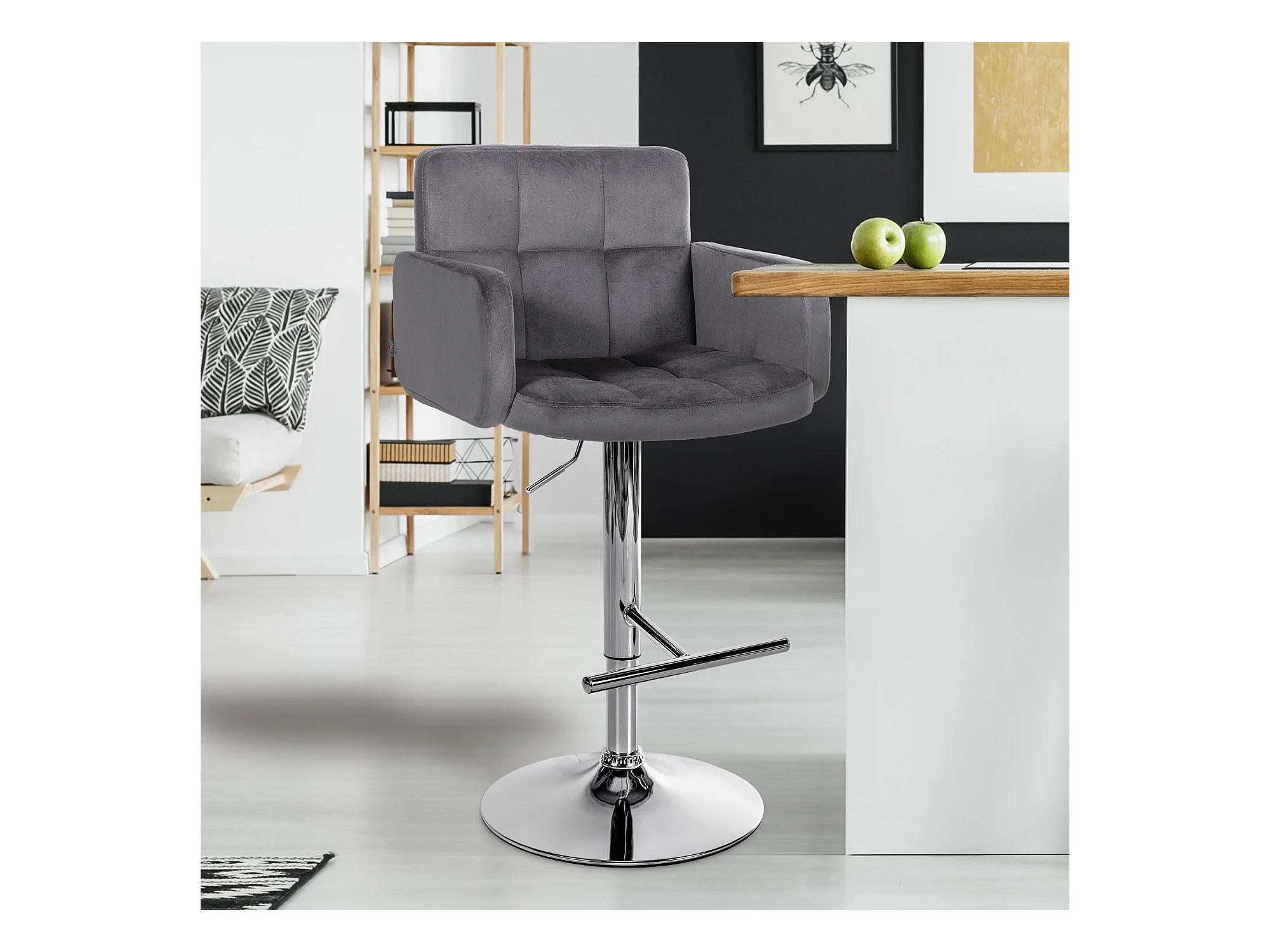 Tabouret de bar - Velours & Chrome - Gris foncé - Toni