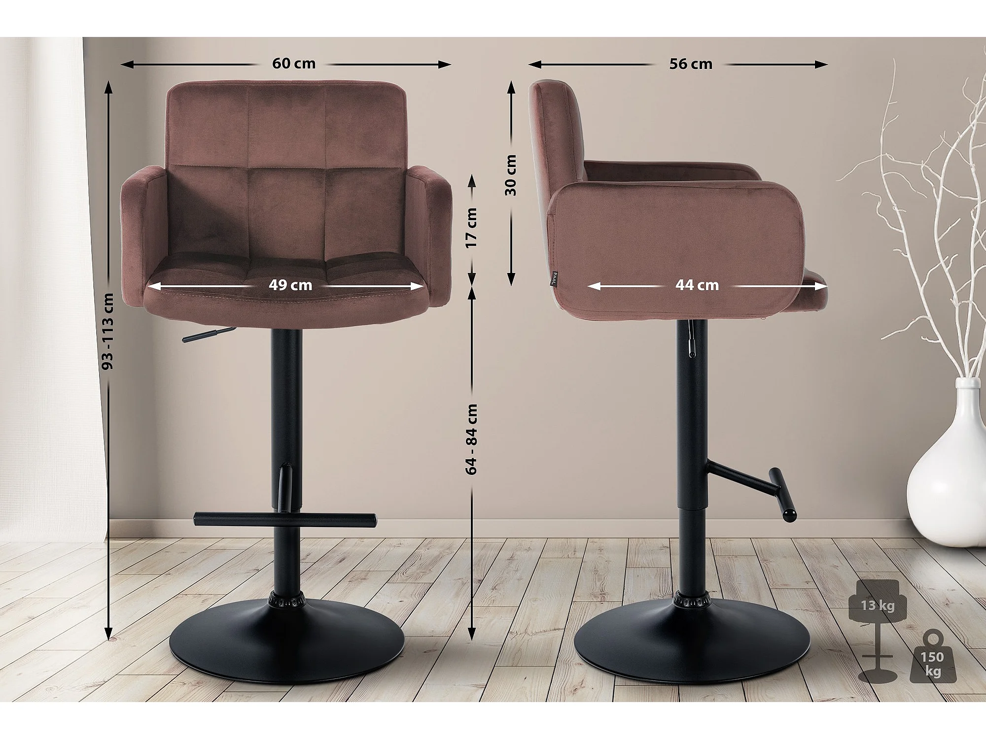 Tabouret de bar - Velours & Noir - Marron - Toni