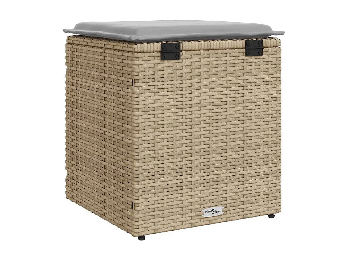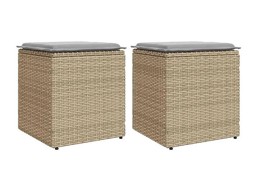 Tabourets de jardin avec coussins lot de 2 beige résine tressée