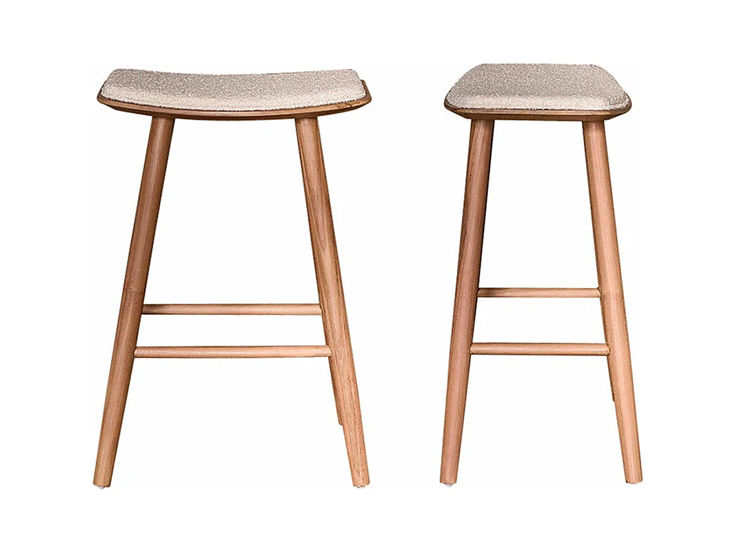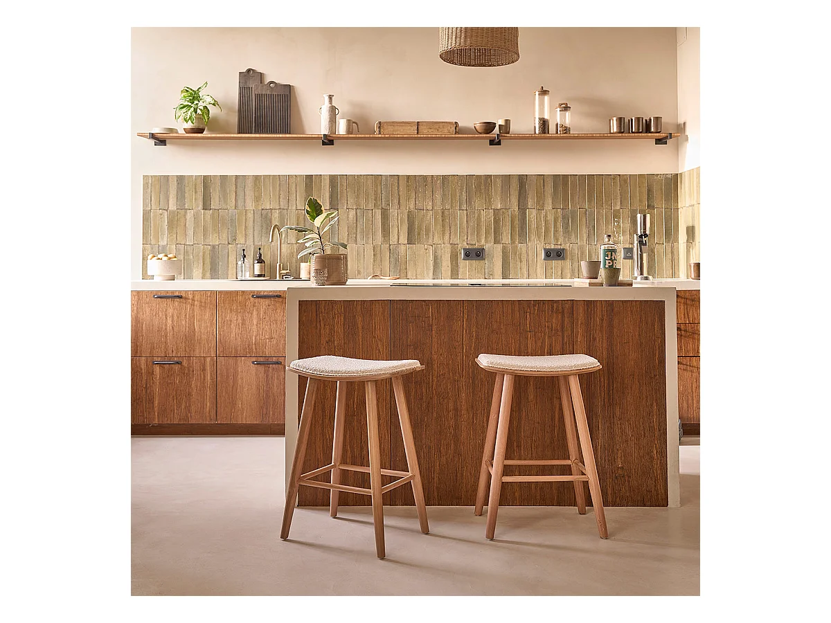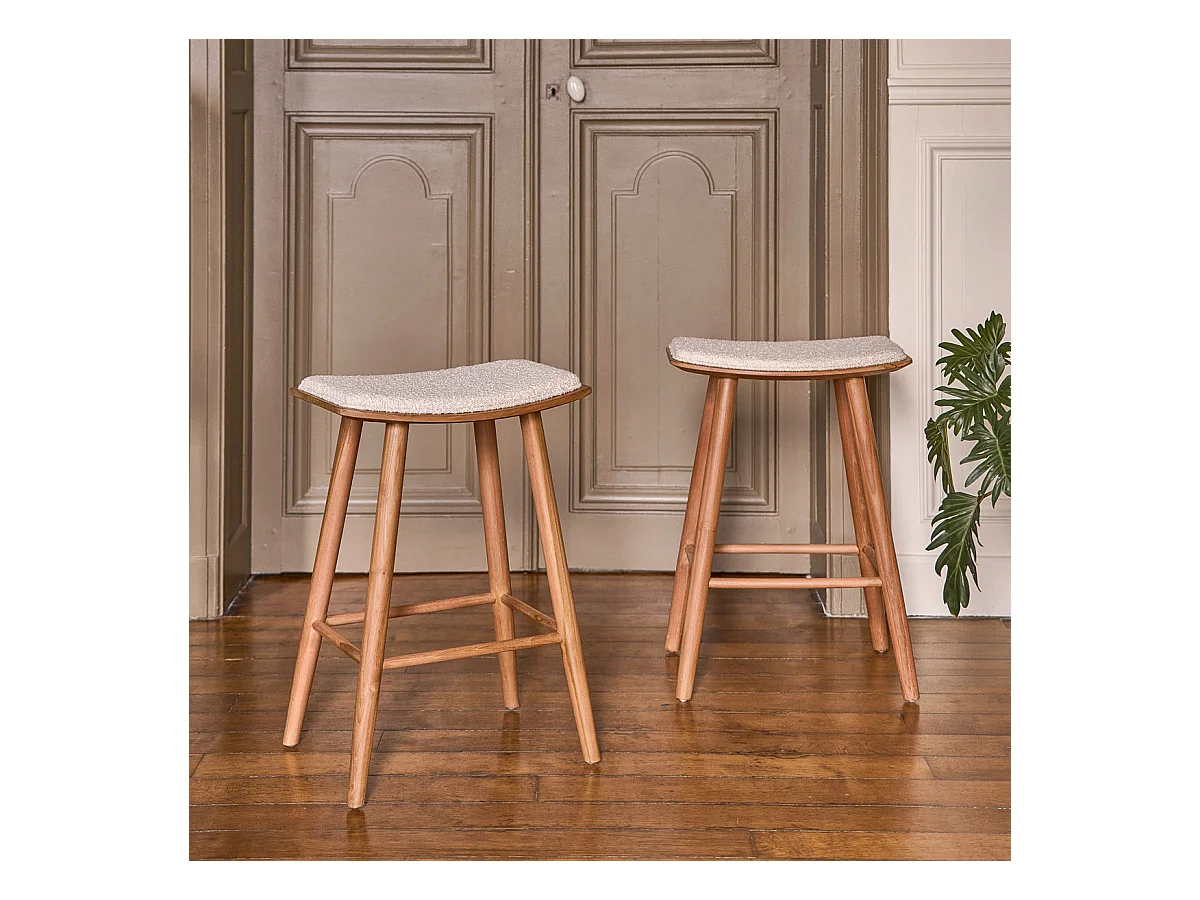 Lot de 2 tabourets en teck massif assise bouclette 65 cm