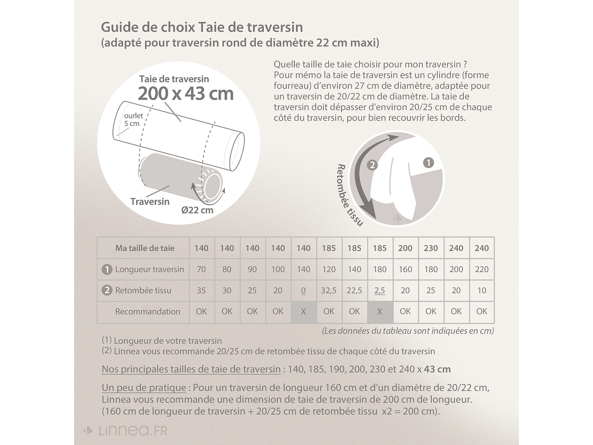 Taie de traversin 200x43 cm satin de coton ANAÏS multicolore