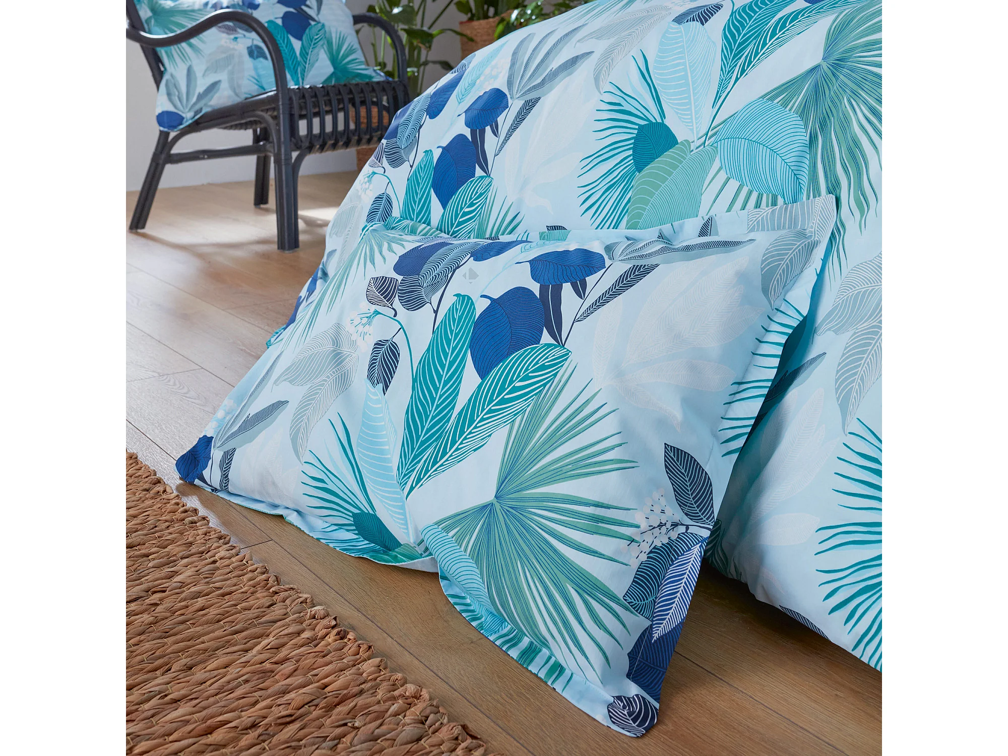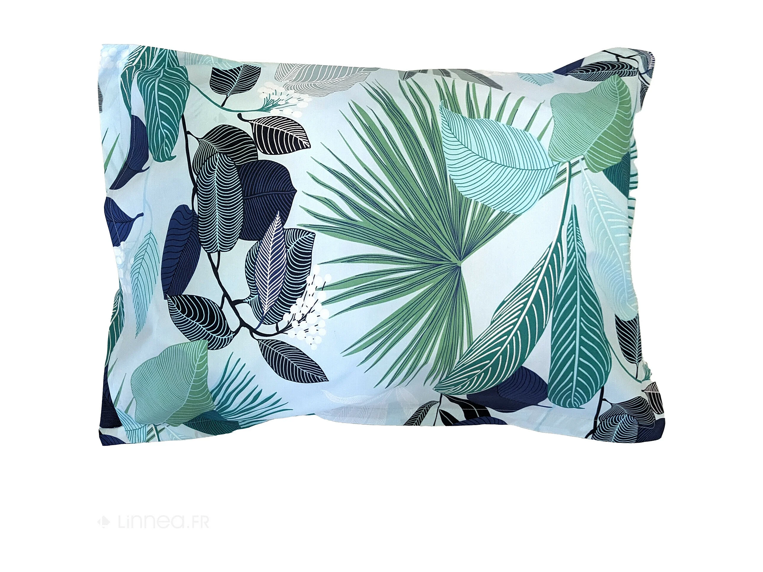 Taie d'oreiller 50x70 cm percale de coton MOOREA PACIFIC bleu/vert