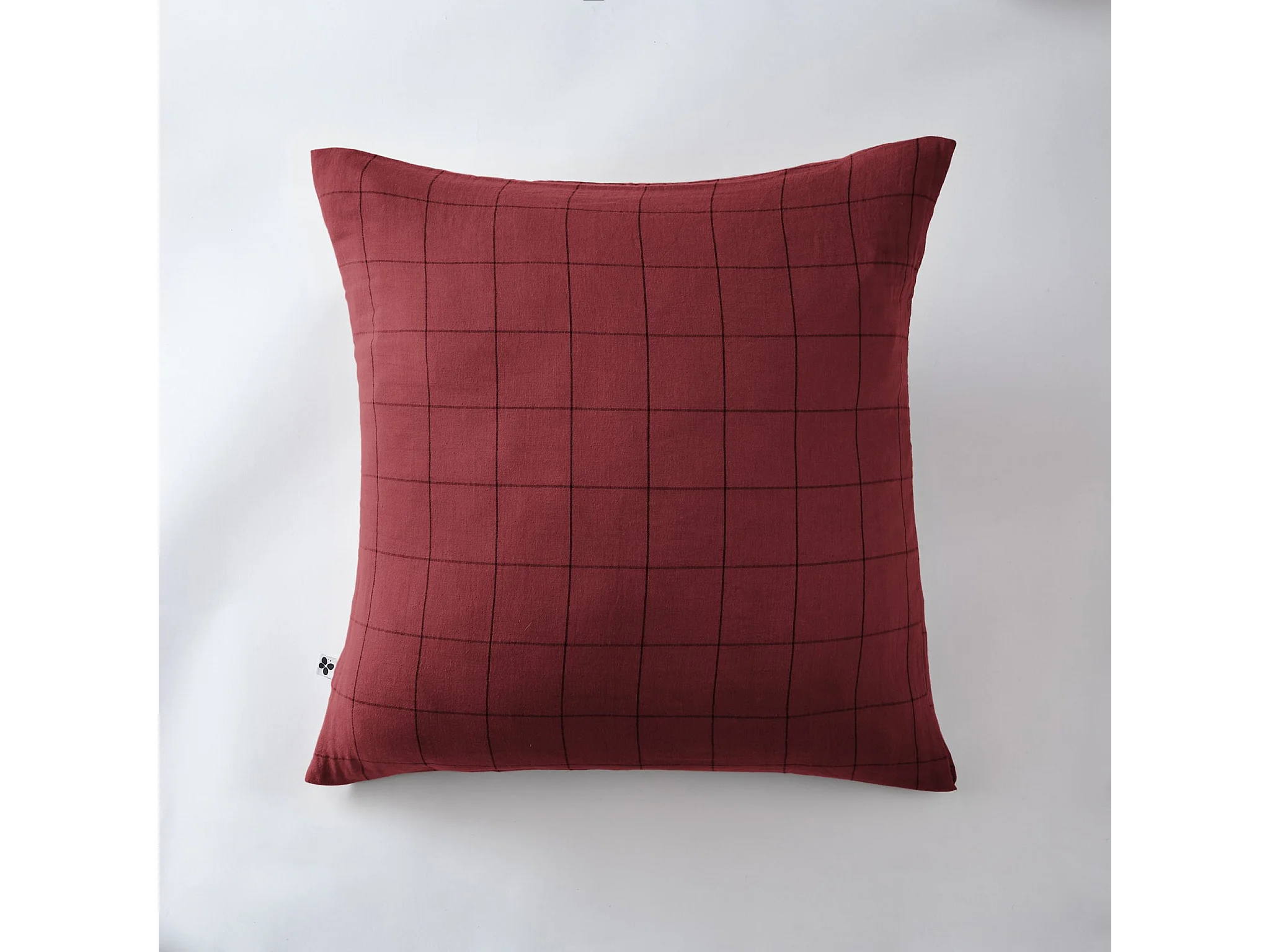 Taie d'oreiller 60x60 double gaze de coton grands carreaux lie de vin Terre de Nuit