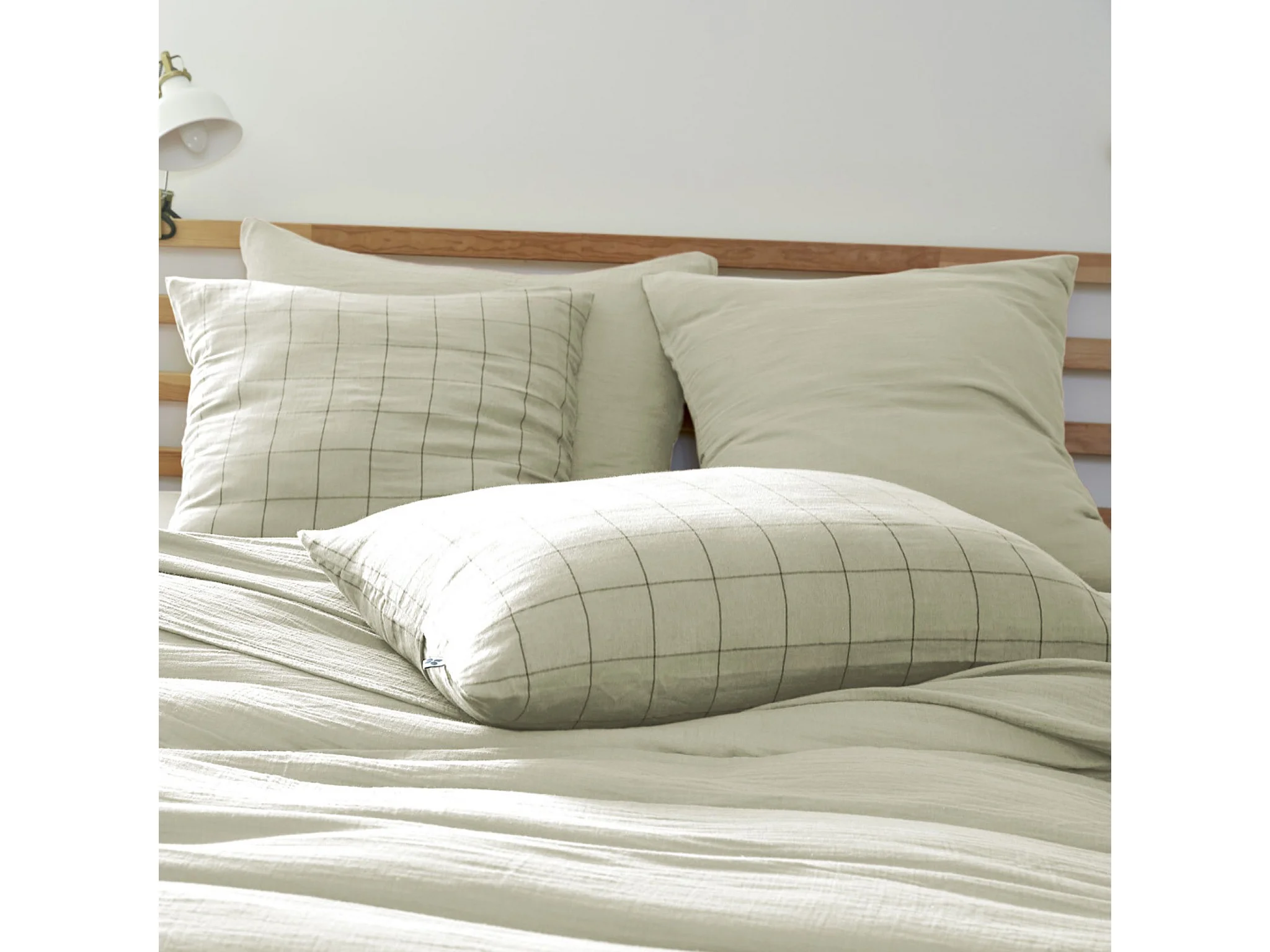 Taie d'oreiller à carreaux double gaze de coton kaki 60x60