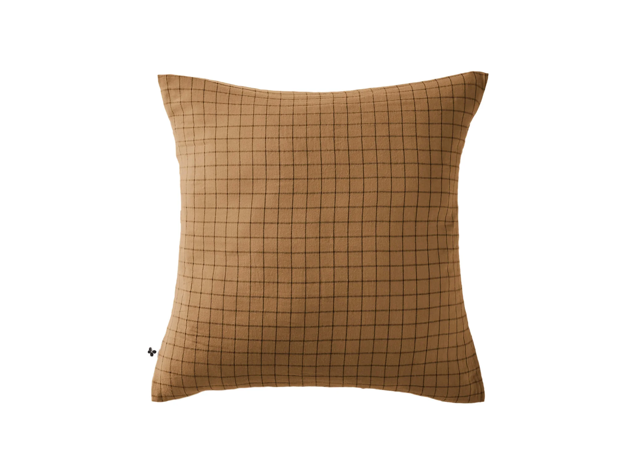 Taie d'oreiller 60x60 double gaze de coton grands carreaux camel Terre de Nuit