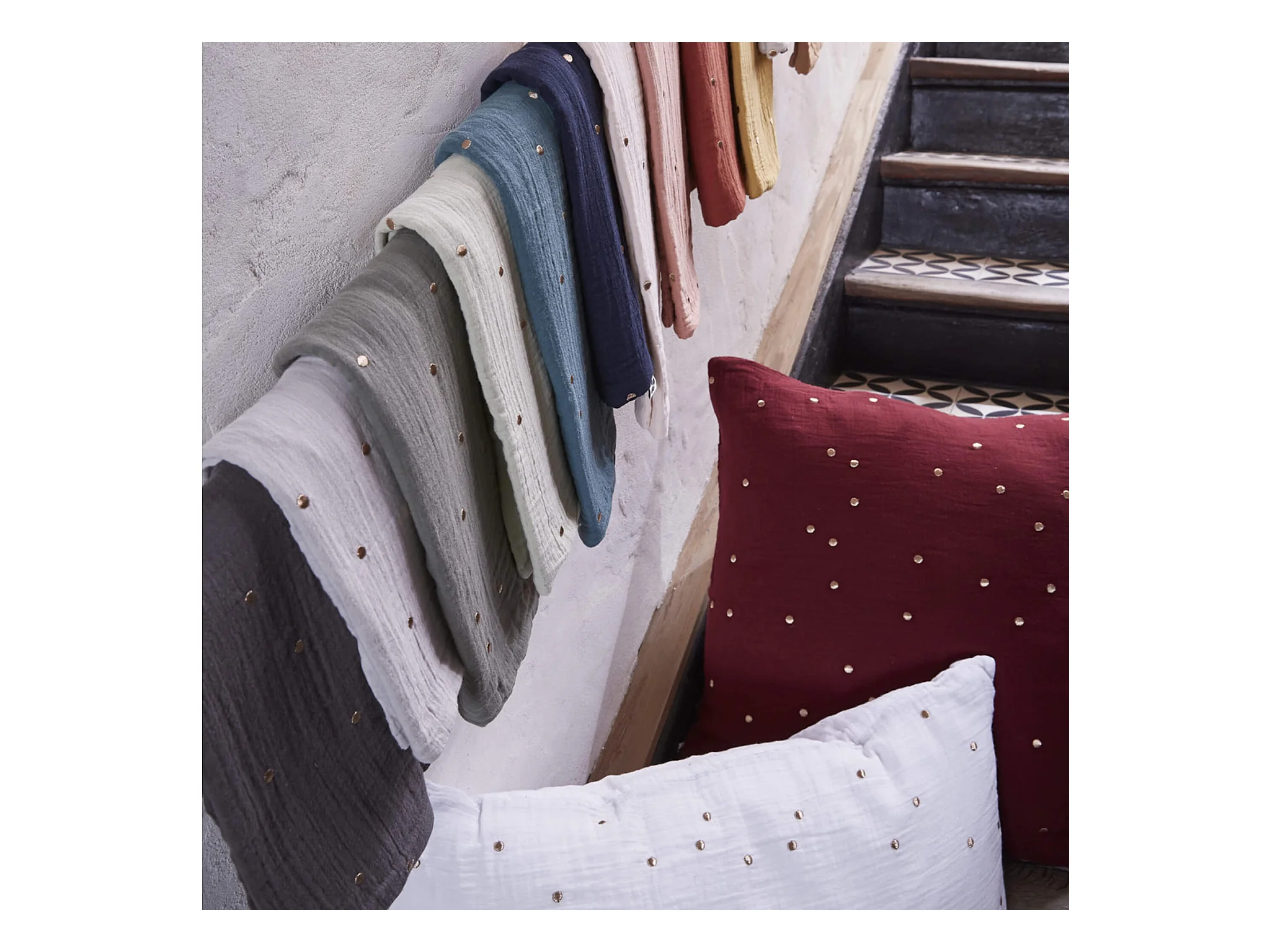 OUREA MOTIF - Taie d'Oreiller 50x70cm Gaze de Coton Eucalyptus à Pois Dorés