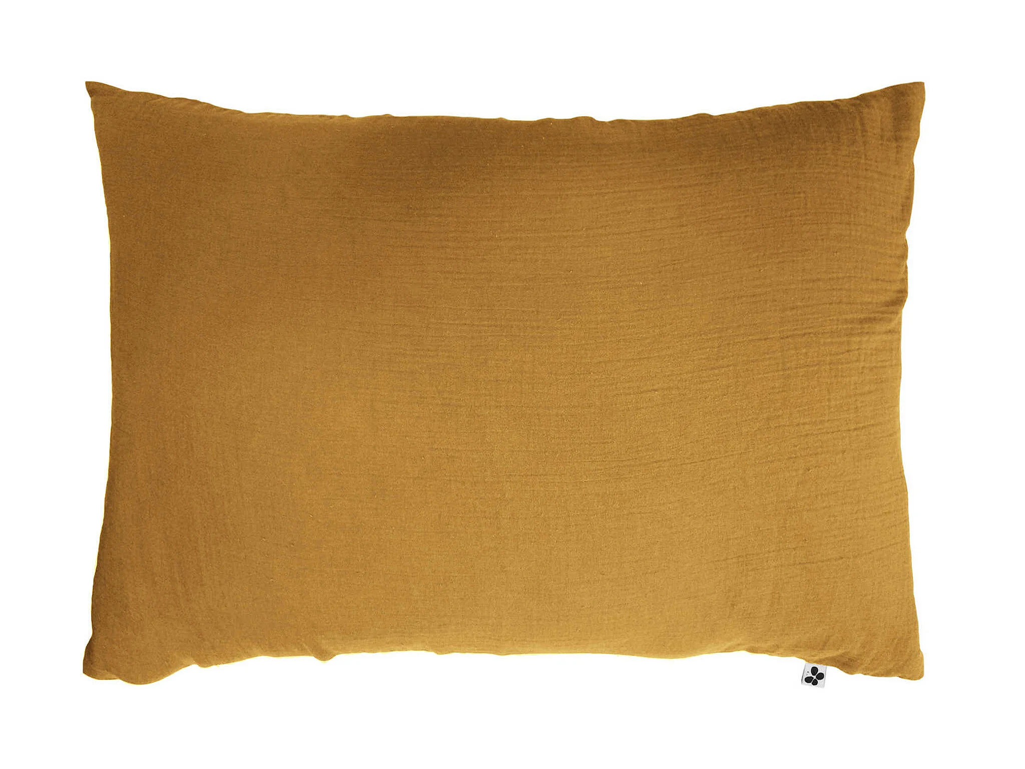Taie d'oreiller double gaze de coton jaune safran 50x70 cm