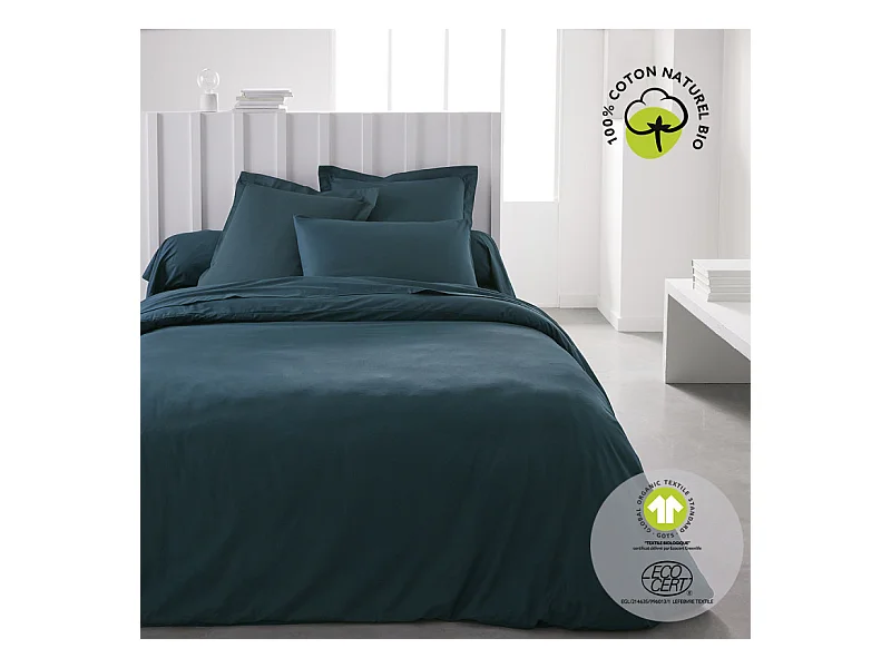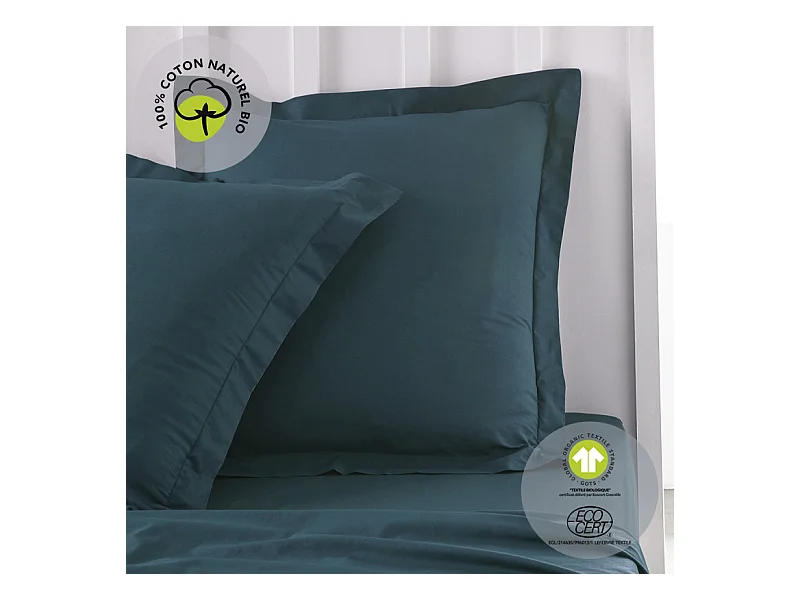 Taie d'oreiller en coton bio "Organic" - Bleu paon - 63 x 63 cm