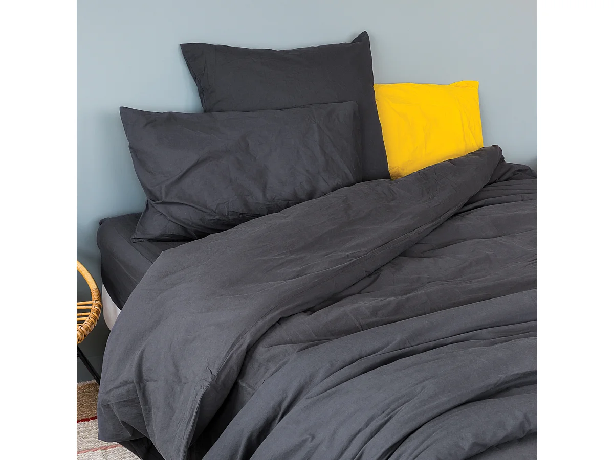 Parure de lit coton percale Anthracite 240x220 - SOMEO - MORPHEE