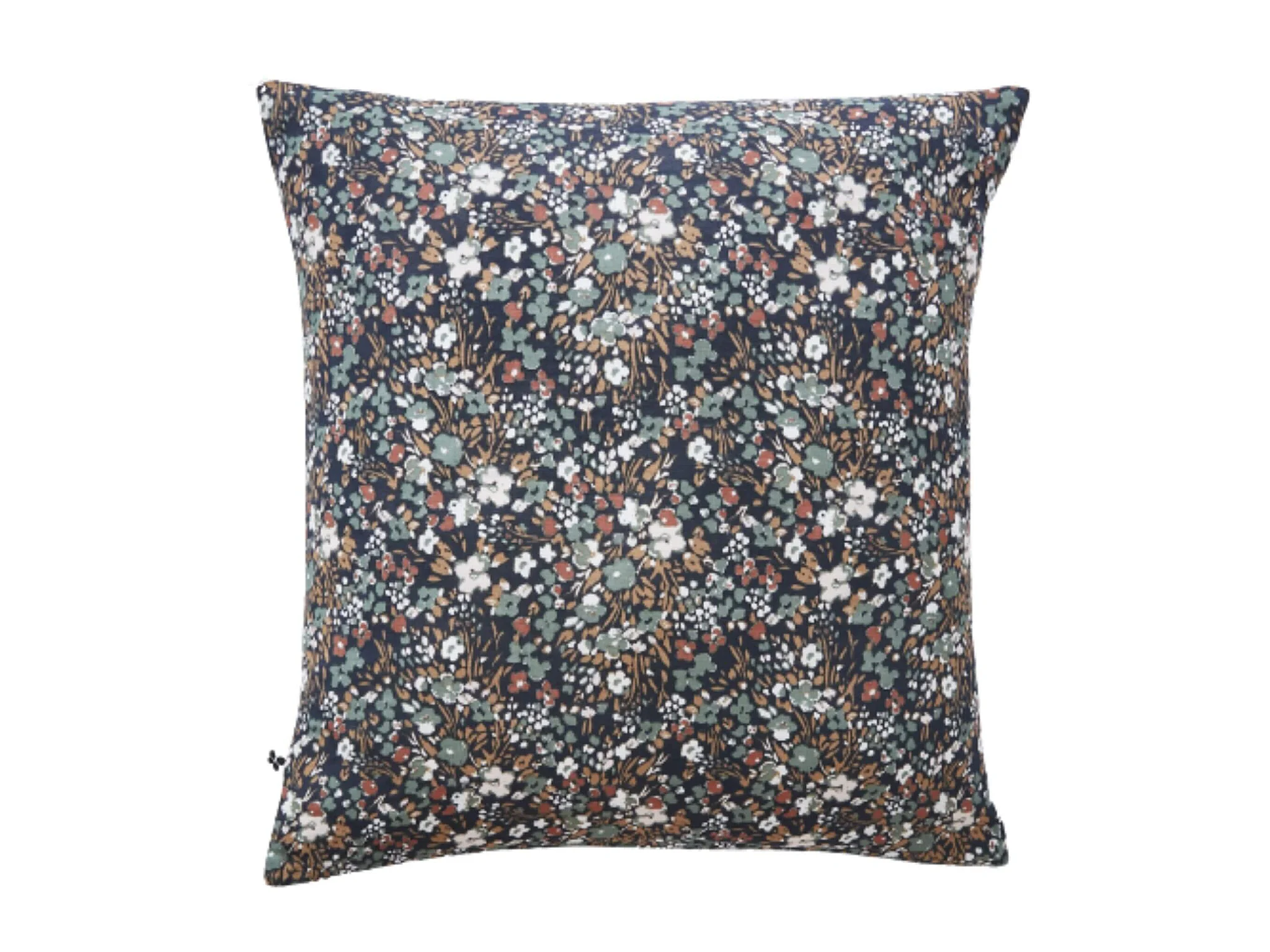 Taie d'oreiller gaze de coton imprimé floral bleu marine 60x60