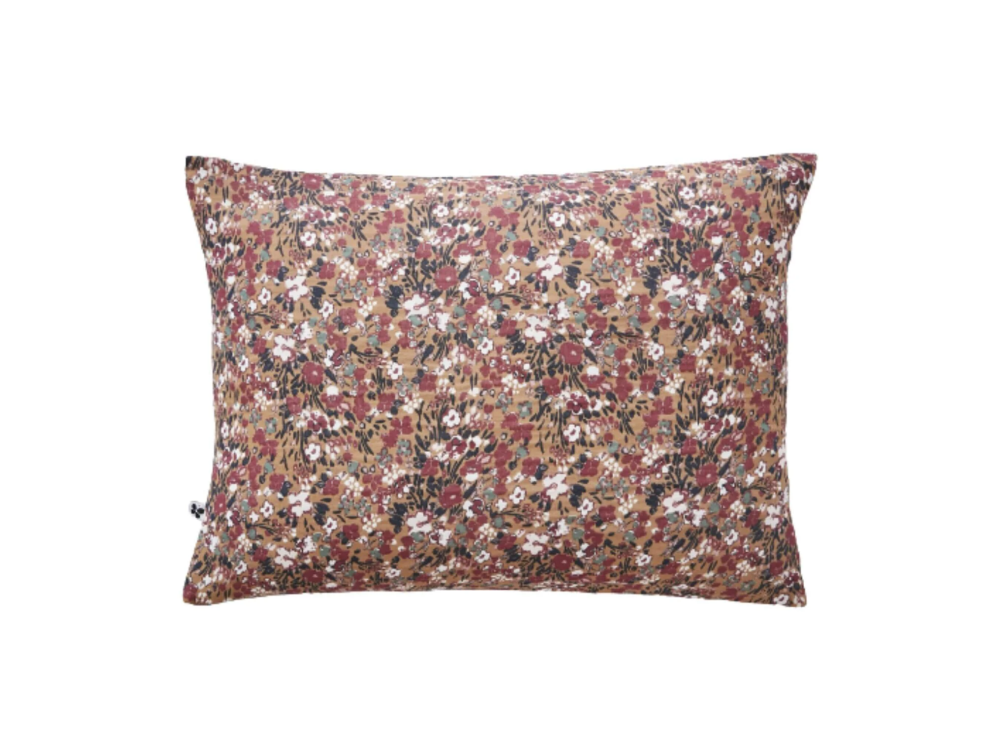Taie d'oreiller gaze de coton imprimé floral marron 50x70