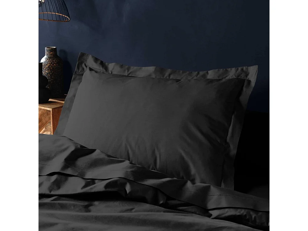 Taie d'oreiller en coton 57 fils 50x70 cm UNI noir, par Soleil d'ocre